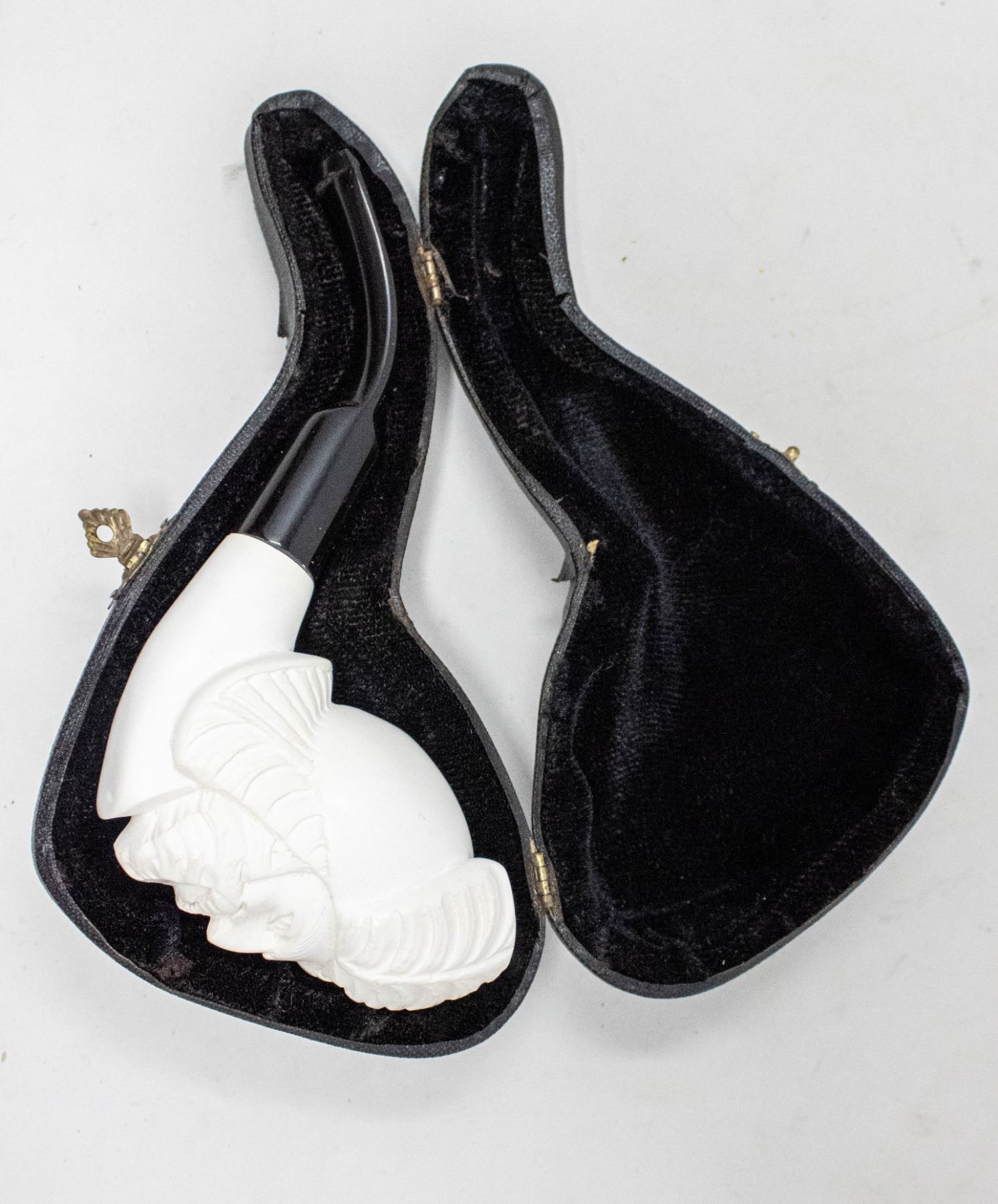 VINTAGE MEERSCHAUM FIGURAL PIPE W CASE