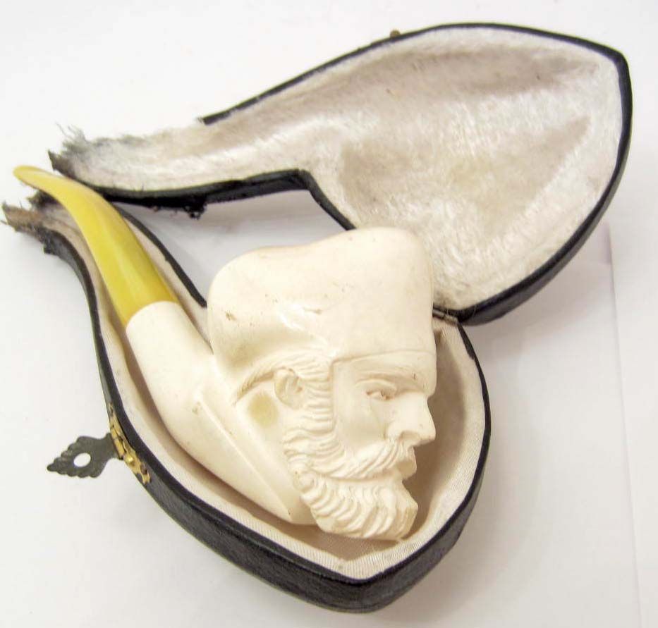 VINTAGE MEERSCHAUM PIPE W/ BAKELITE STEM & CASE