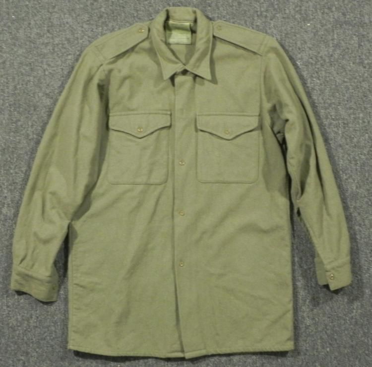 VINTAGE MEN'S COMBAT SHIRT-IRELAND-SPEC TAG READS "LADYBIRD-BELFAST"SIZE 2-OD FLANNELEPAULETTES-BUTTON POCKETS AND FRONT--SIZE 2 (BRITISH)