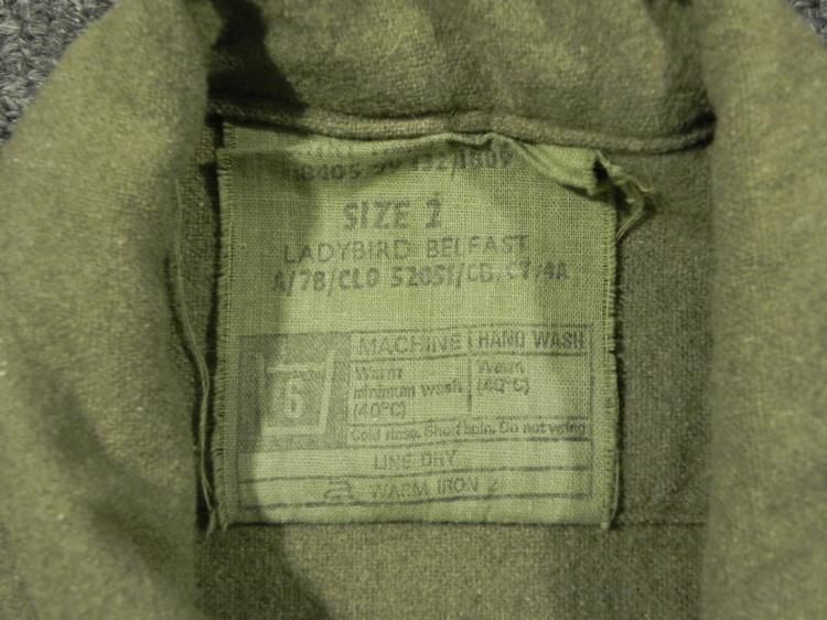 VINTAGE MEN'S COMBAT SHIRT-IRELAND-SPEC TAG READS "LADYBIRD-BELFAST"SIZE 2-OD FLANNELEPAULETTES-BUTTON POCKETS AND FRONT--SIZE 2 (BRITISH)