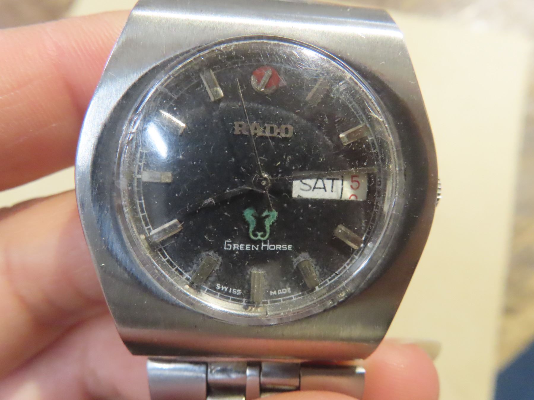 VINTAGE MEN'S RAD GREEN HORSE, AUTO WIND, DAY/DATE @3 RUNS