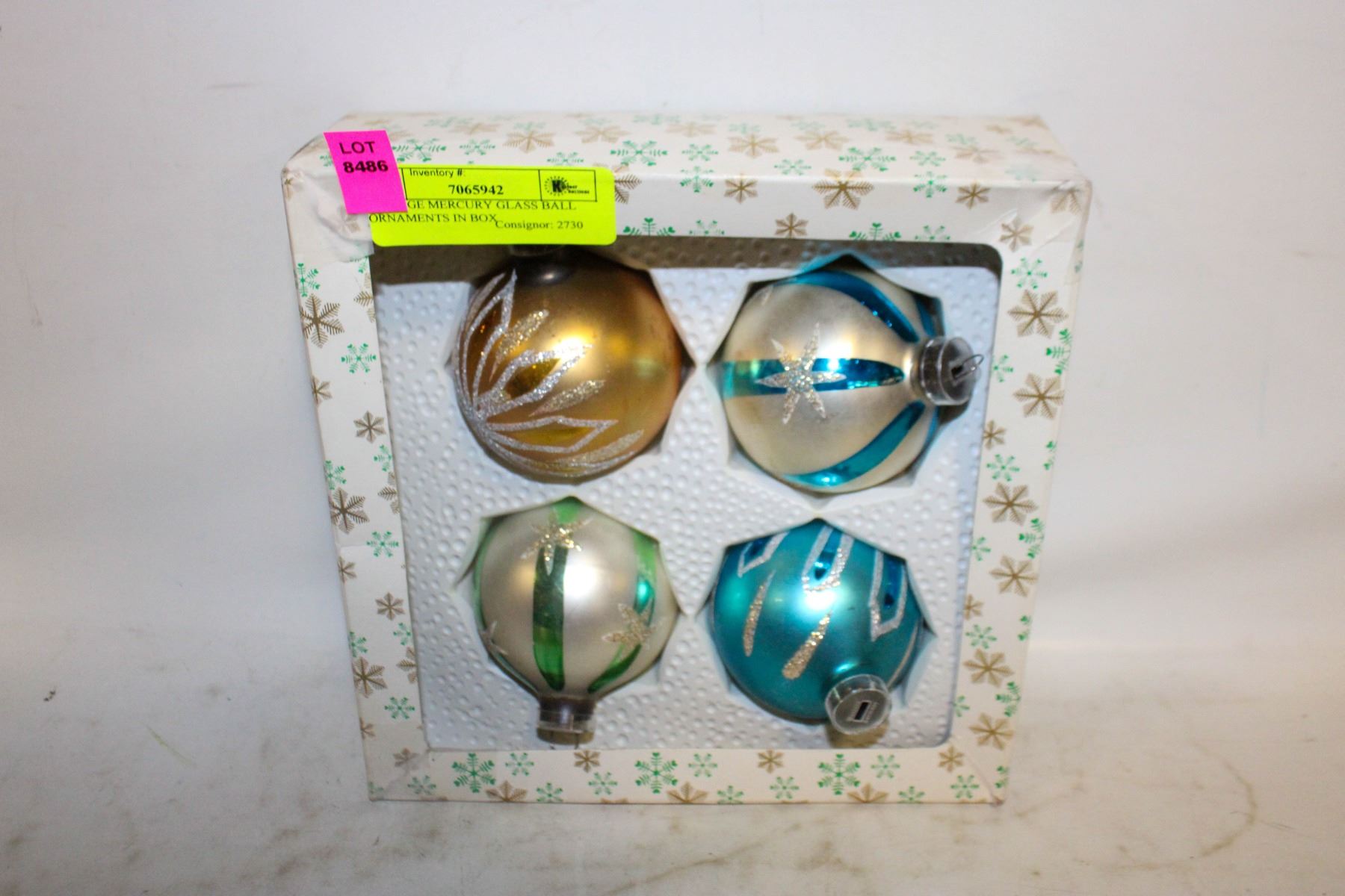 VINTAGE MERCURY GLASS BALL ORNAMENTS IN BOX