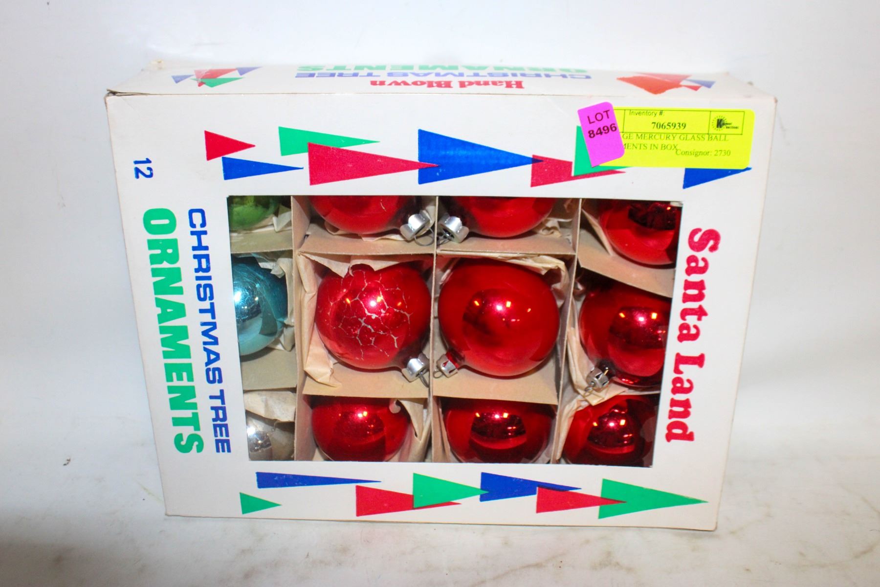 VINTAGE MERCURY GLASS BALL ORNAMENTS IN BOX