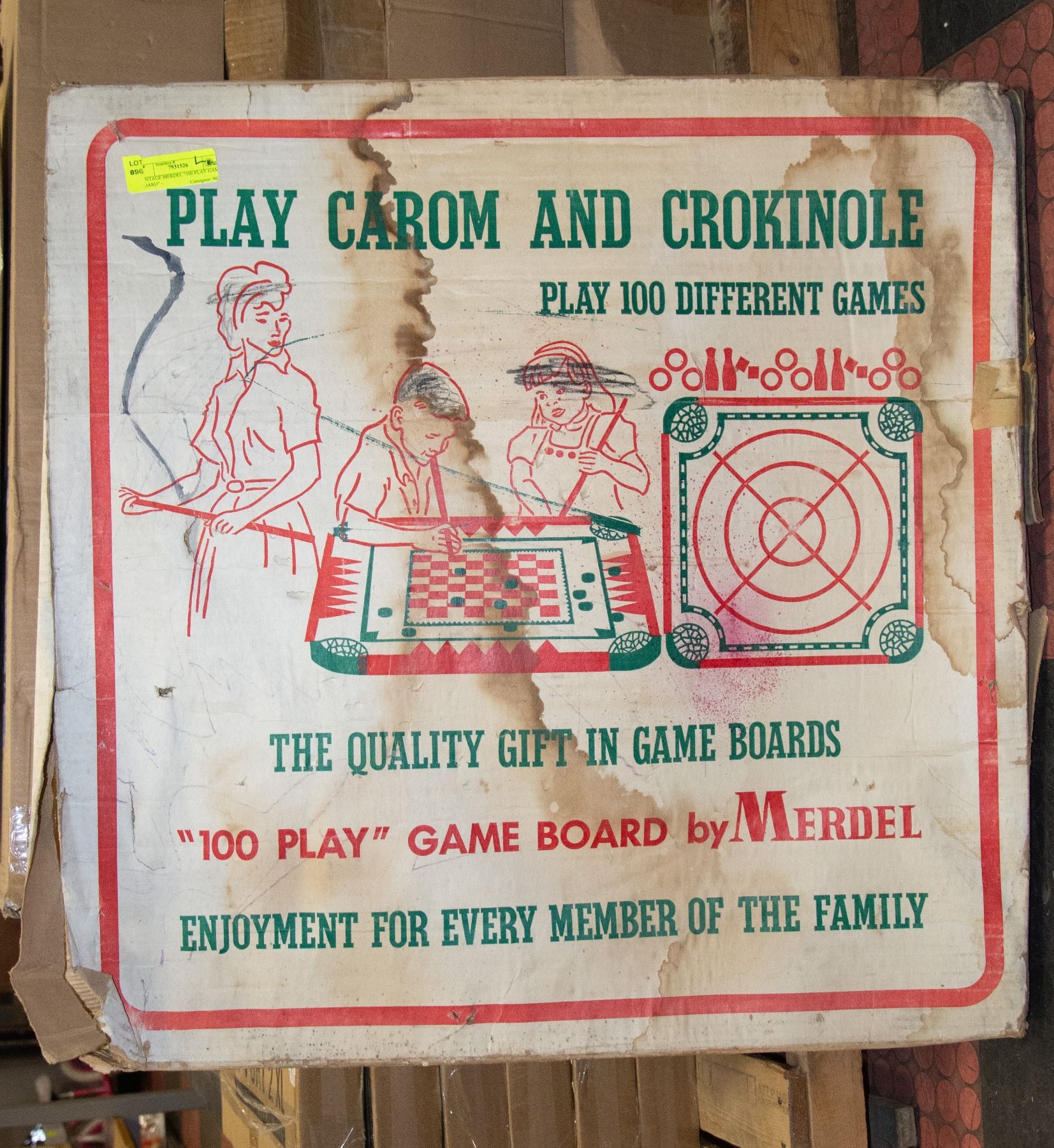 DOUBLE SIDED WOOD GAME BOARD, PLAY CAROM AND CROKINOLE, VINTAGE MID-CENTURY PIECE WITH ORIGINAL BOX **ALL ITEMS MUST BE REMOVED BY 5PM SATURDAY, FEBRUARY 4TH 2023.** ALL REMAINING ITEMS WILL BE SUBJECT TO A $6.00 PER DAY STORAGE CHARGE. ANY ITEMS REMAINING AFTER MONDAY, FEBRUARY 20TH, 2023 WILL BE CONSIDERED FORFEITED. NO REFUNDS WILL BE ISSUED FOR FORFEITED ITEMS. TO SCHEDULE A PICK UP APPOINTMENT CLICK HERE