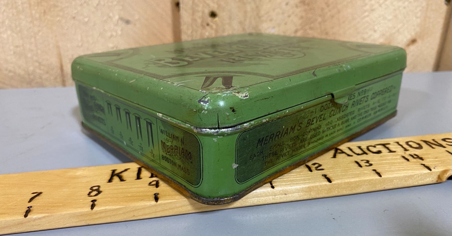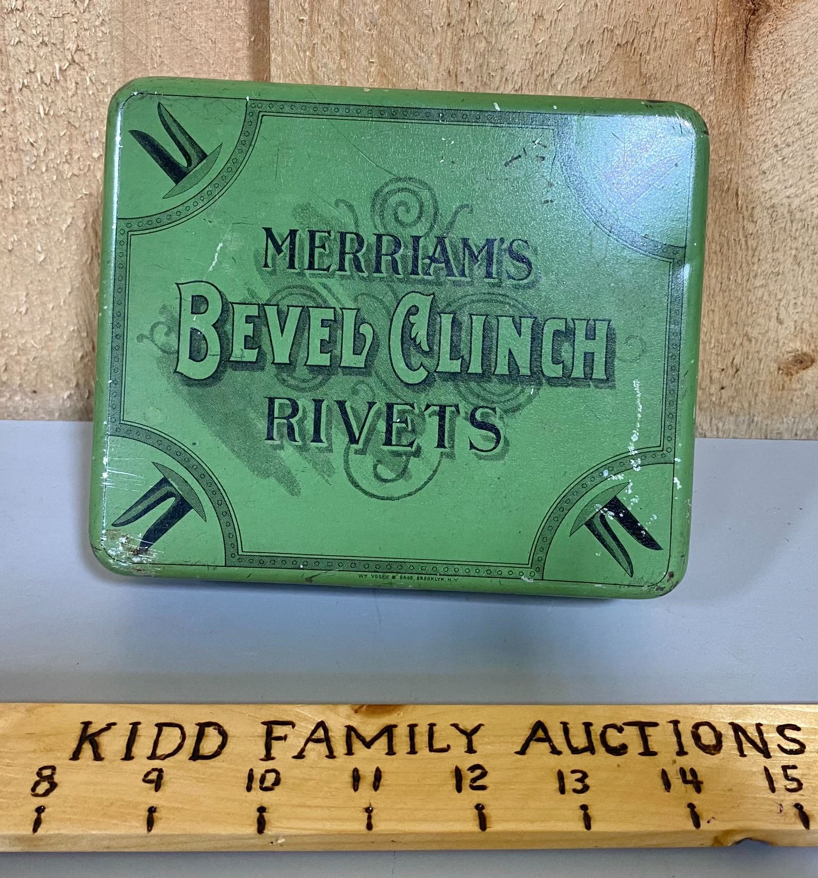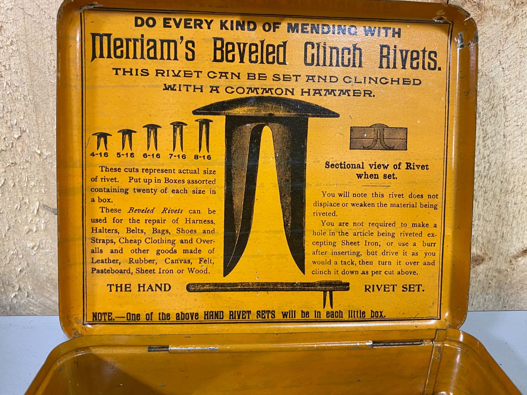VINTAGE MERRIAM'S RIVETS TIN - GREAT GRAPHICS
