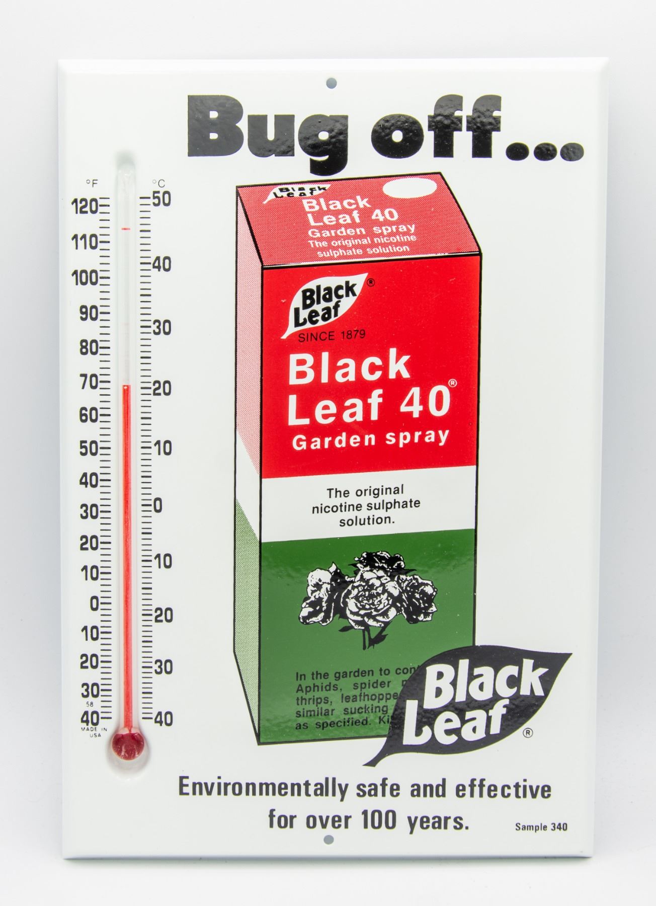 VINTAGE METAL BLACK LEAF BUG OFF THERMOMETER