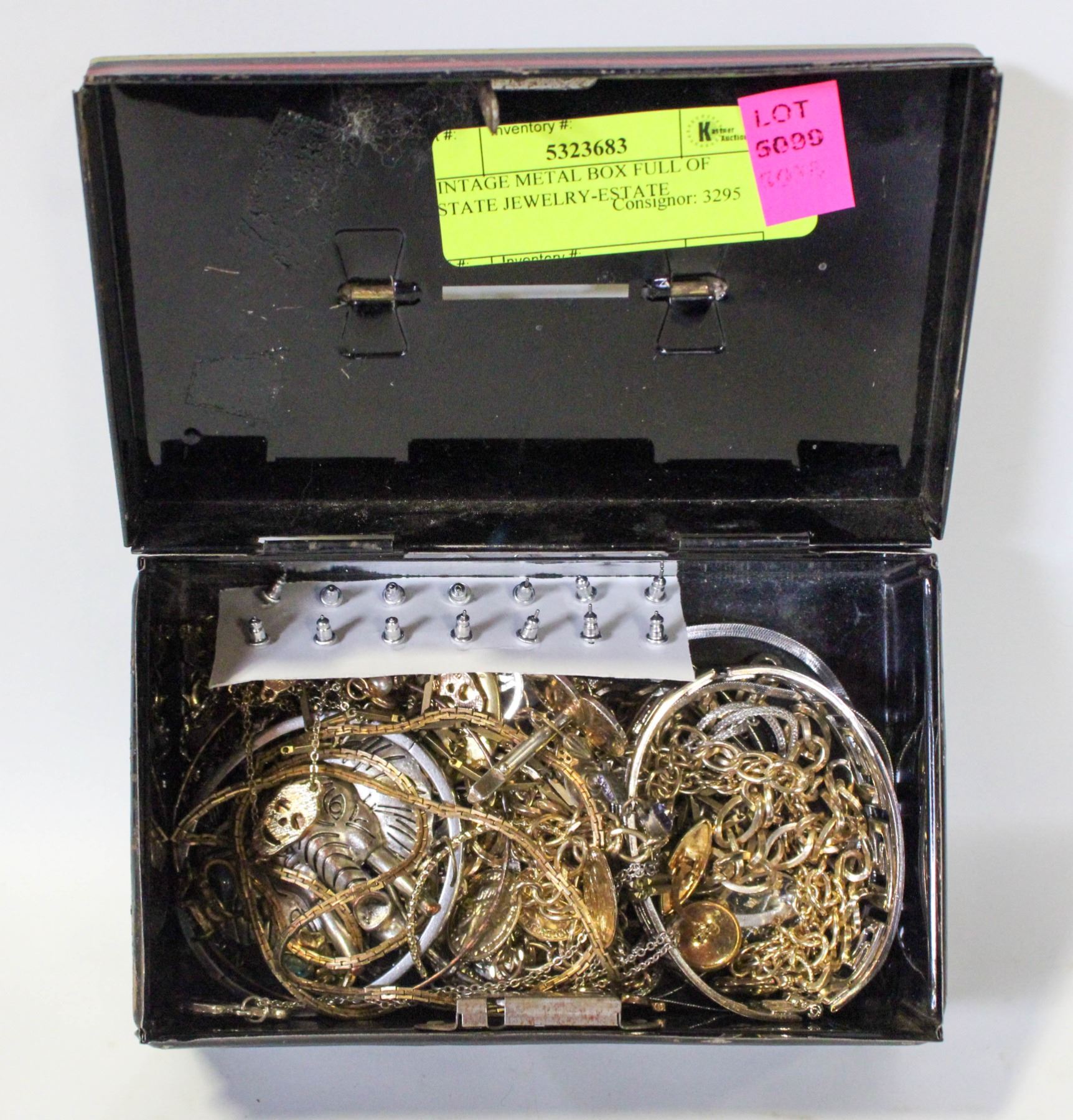 VINTAGE METAL BOX FULL OF ESTATE JEWELRY-ESTATE
