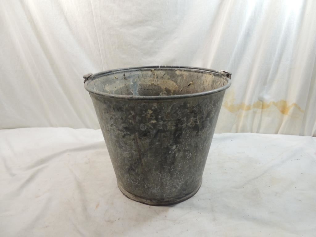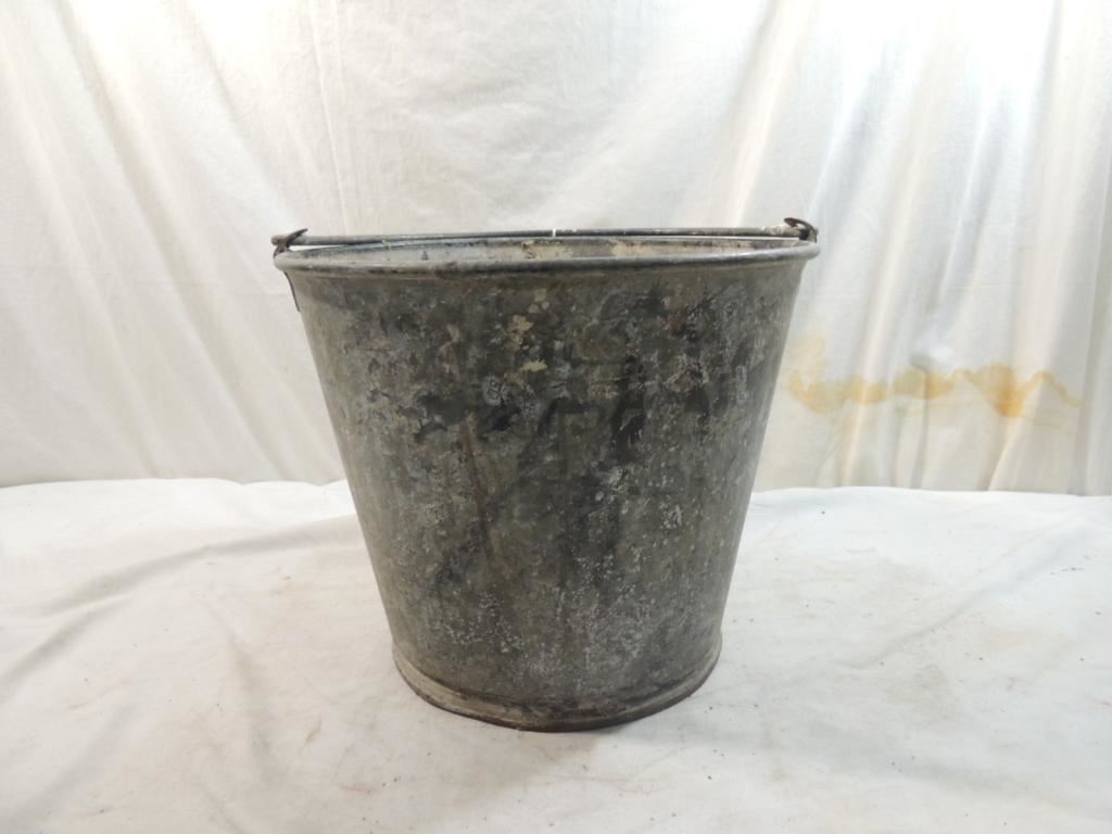 VINTAGE METAL BUCKET, LARGE METAL BUCKET, PAIL BUCKET, HANDLE AS SHOWN SEE PHOTO FOR MORE DETAILS.