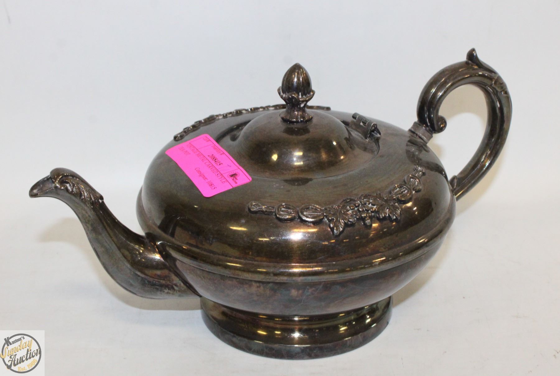 VINTAGE METAL CARVED STYLE TEA POT