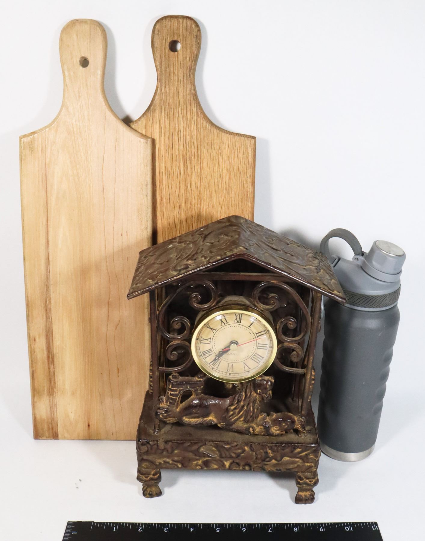 VINTAGE METAL CLOCK, WATER BOTTLE, AND