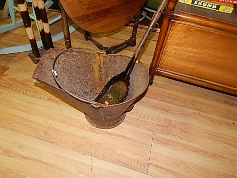 VINTAGE METAL COAL SKUTTLE WITH SHOVEL