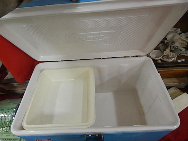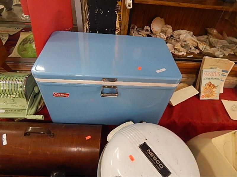 VINTAGE METAL COLEMAN COOLER IN ORIGINAL BOX LIKE NEW CONDITION
