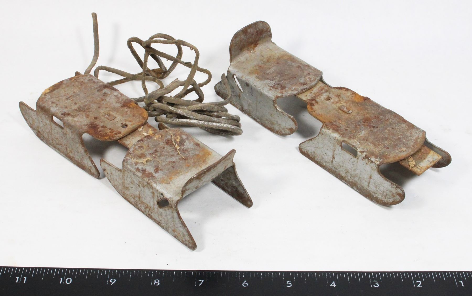 VINTAGE METAL ICE SKATES, 19X6CM.