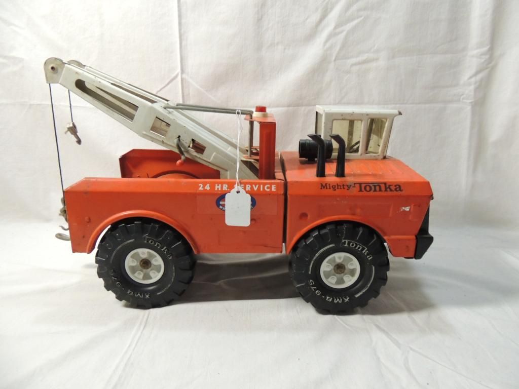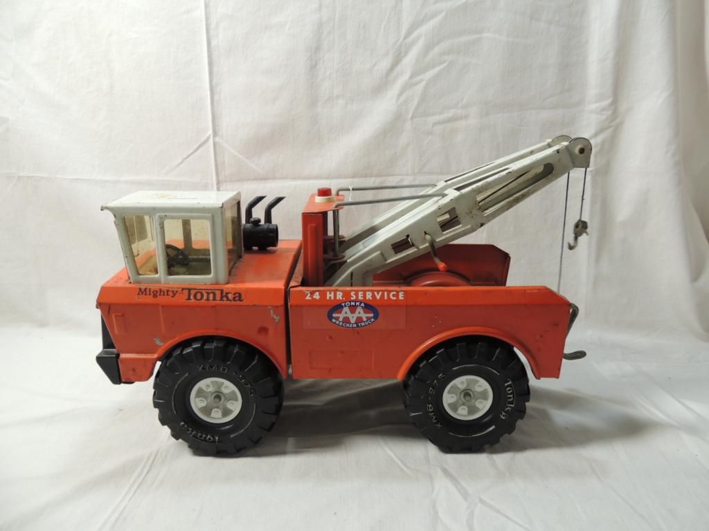 METAL MIGHTY TONKA TOW TRUCK CIRCA 1962. PRESSED STEEL METAL TOY TRUCK. LARGE TOY TRUCK. VINTAGE TOY. AS SHOWN. SEE PHOTO FOR MORE DETAILS