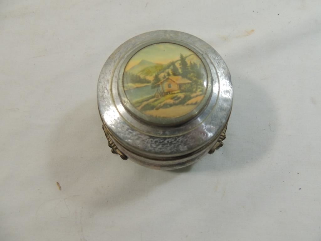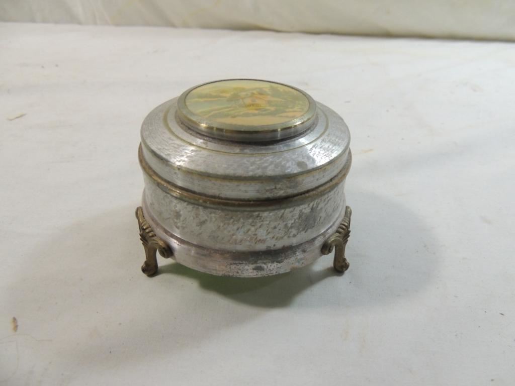 VINTAGE METAL POWDER HOLDER AS SHOWN SEE PHOTO FOR MORE DETAILS.