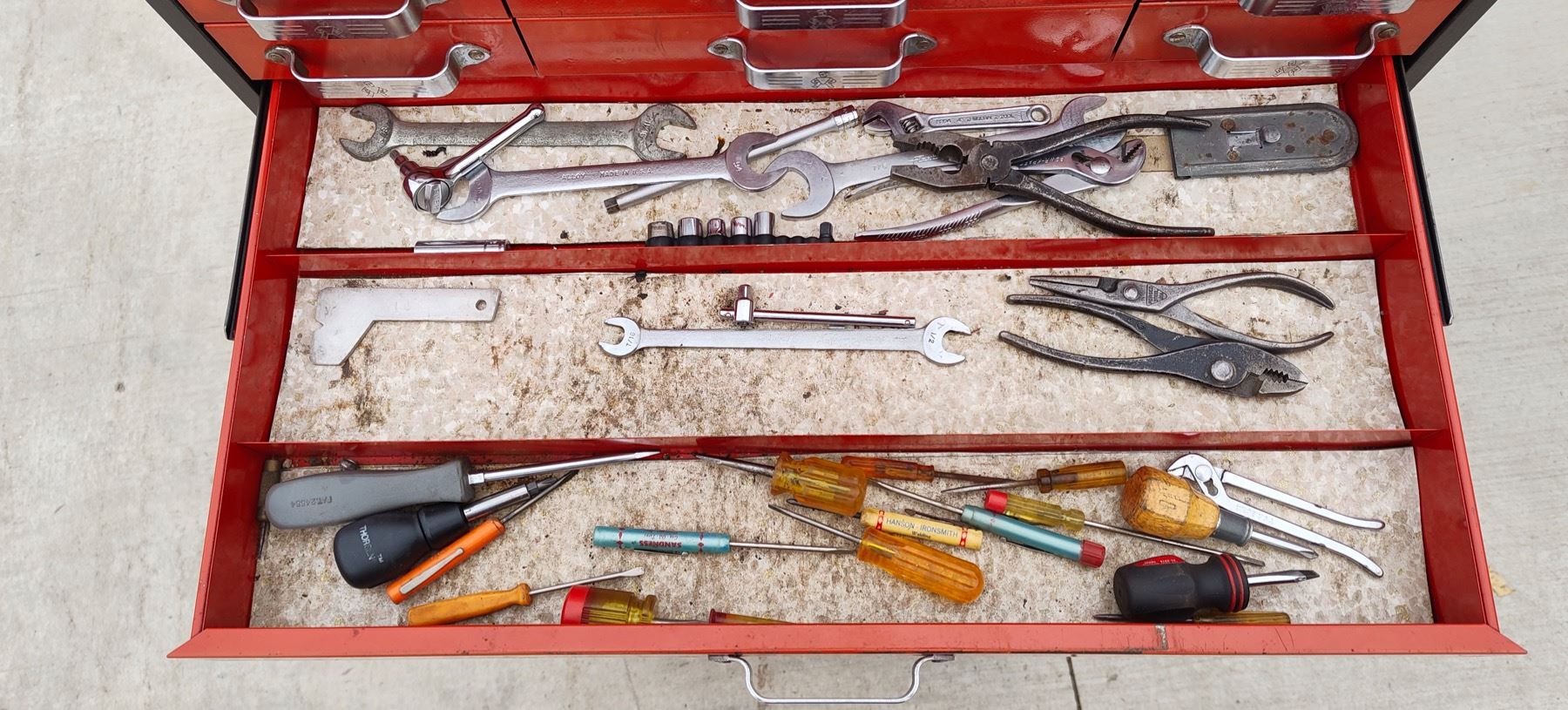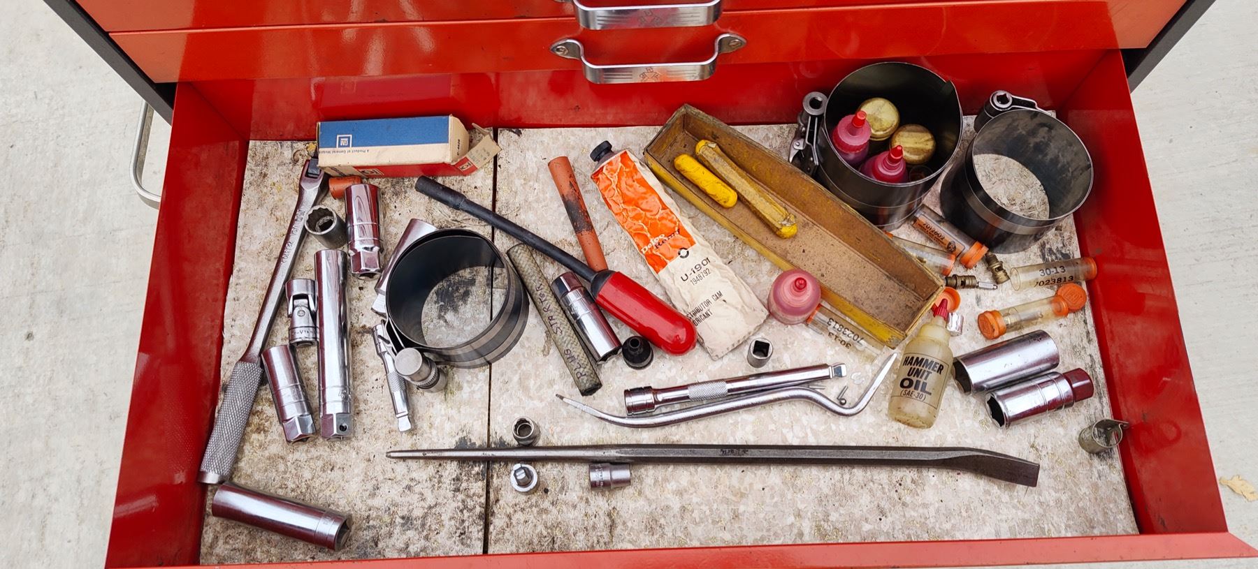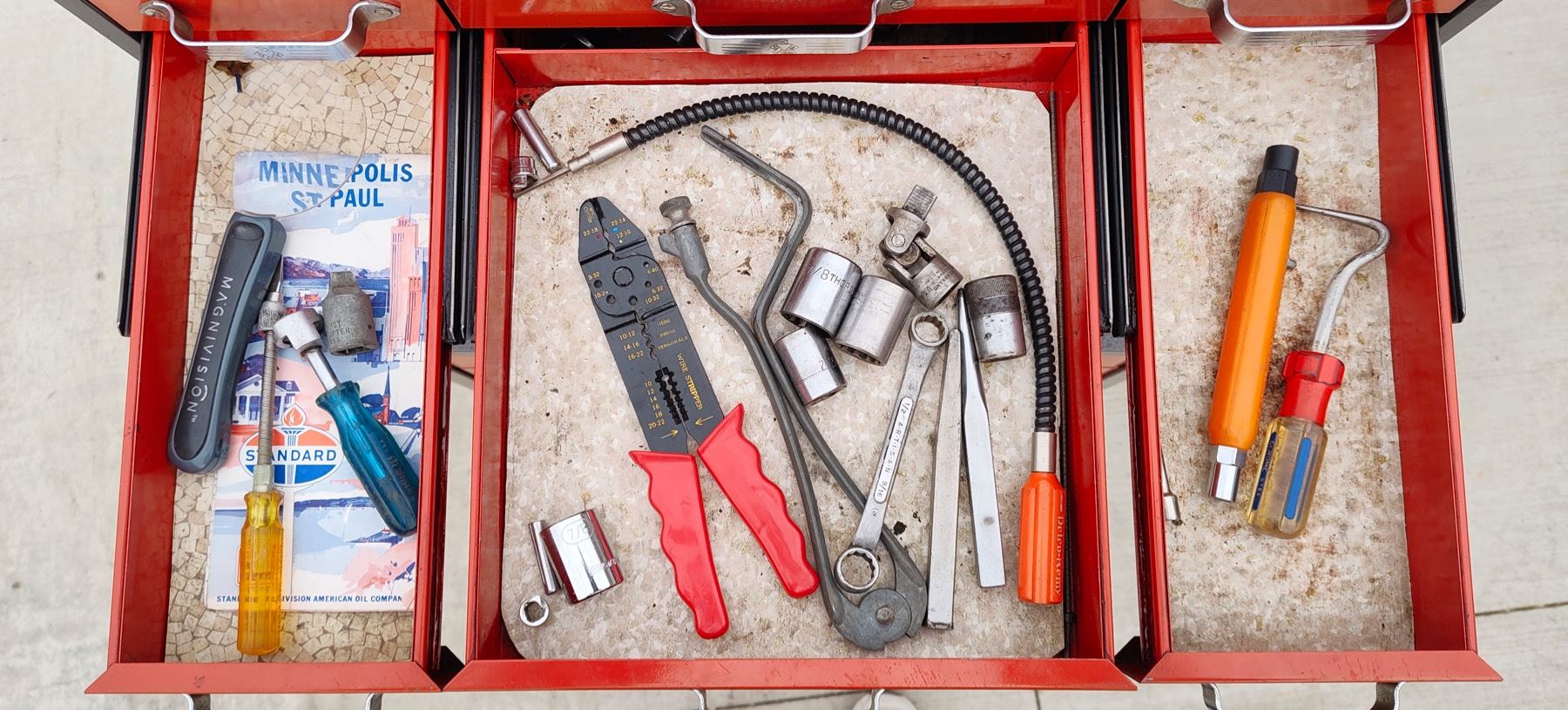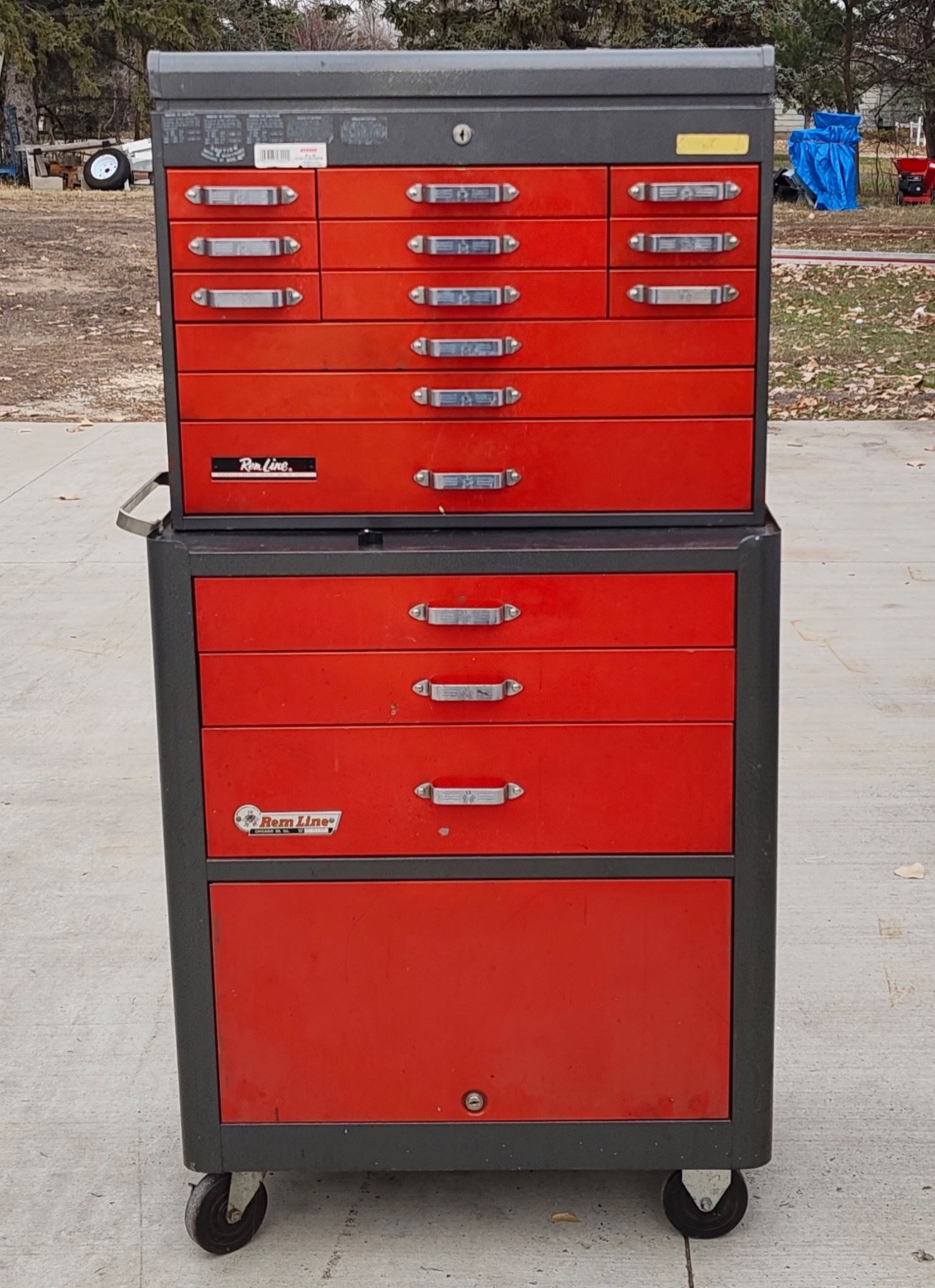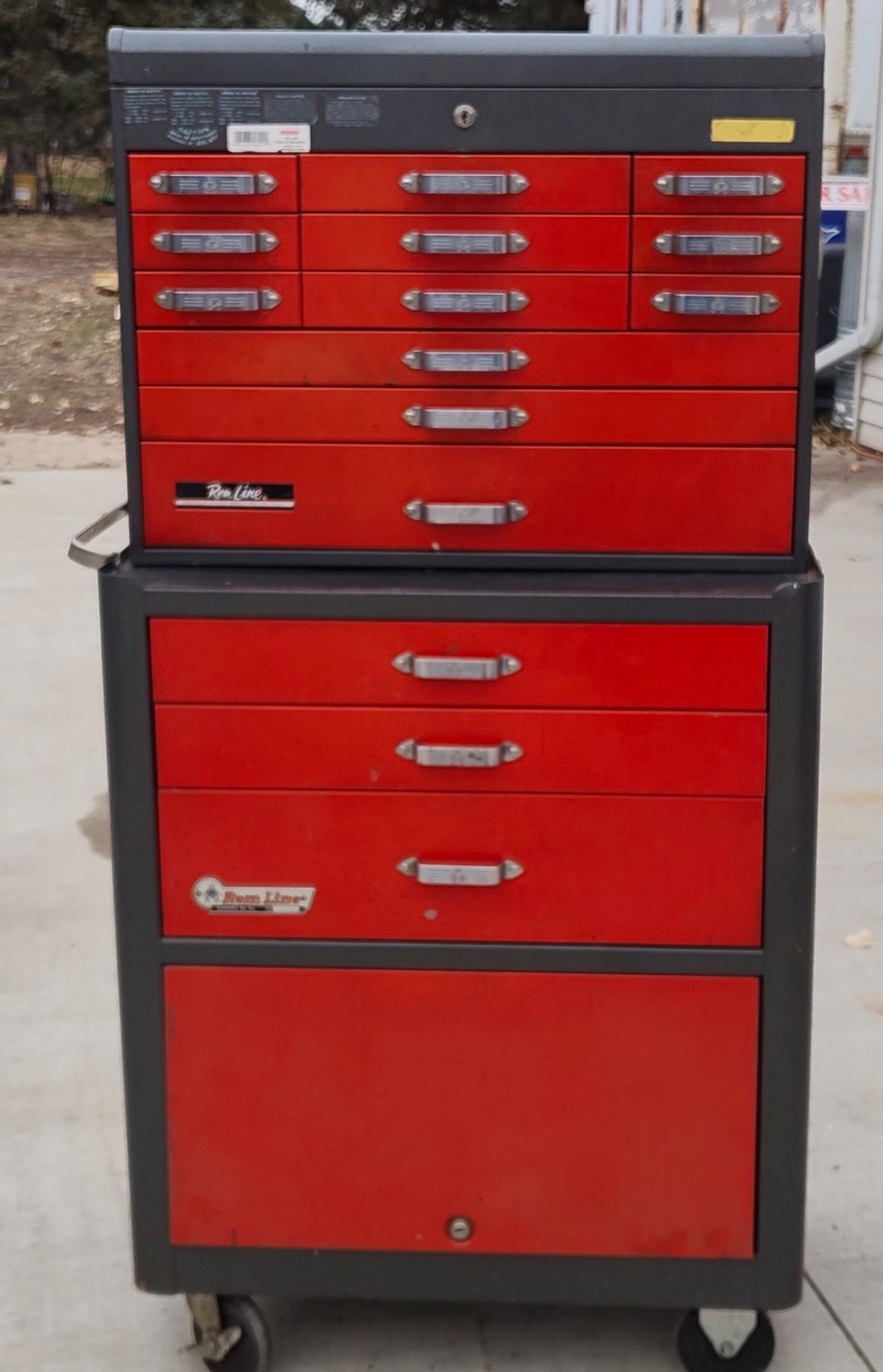 VINTAGE METAL REM LINE TOP AND BOTTOM TOOLBOXES WITH CONTENTS!