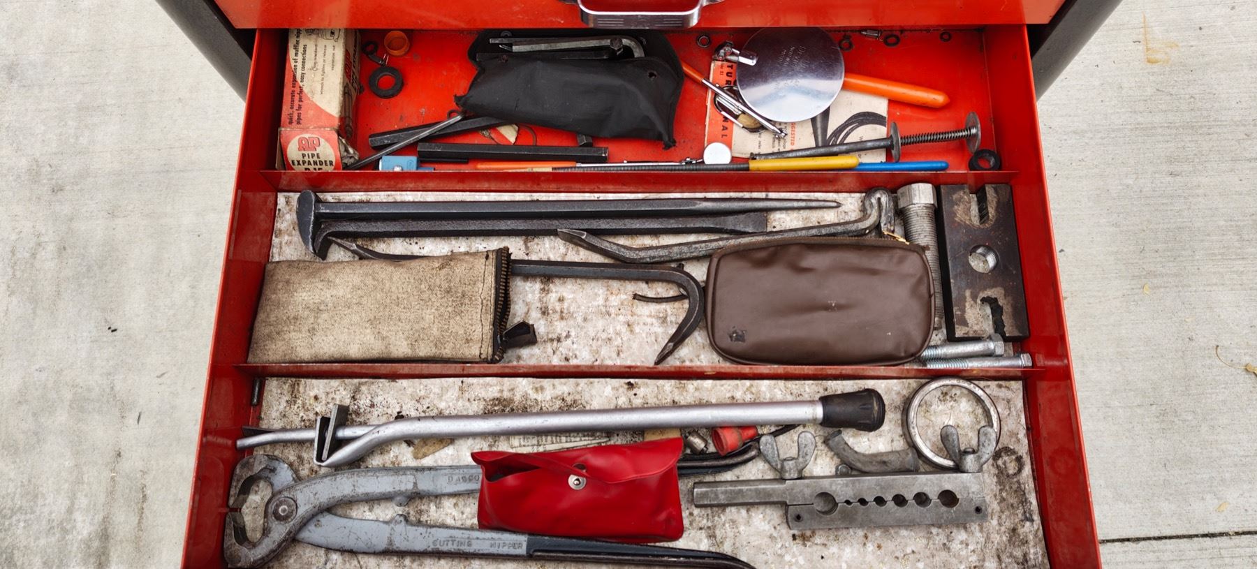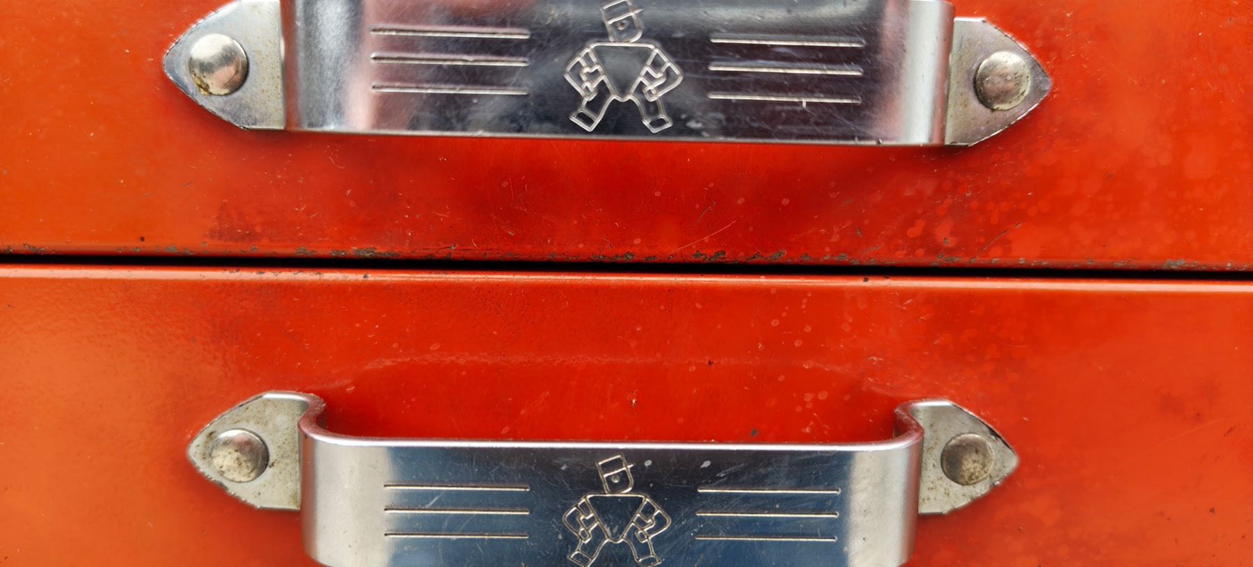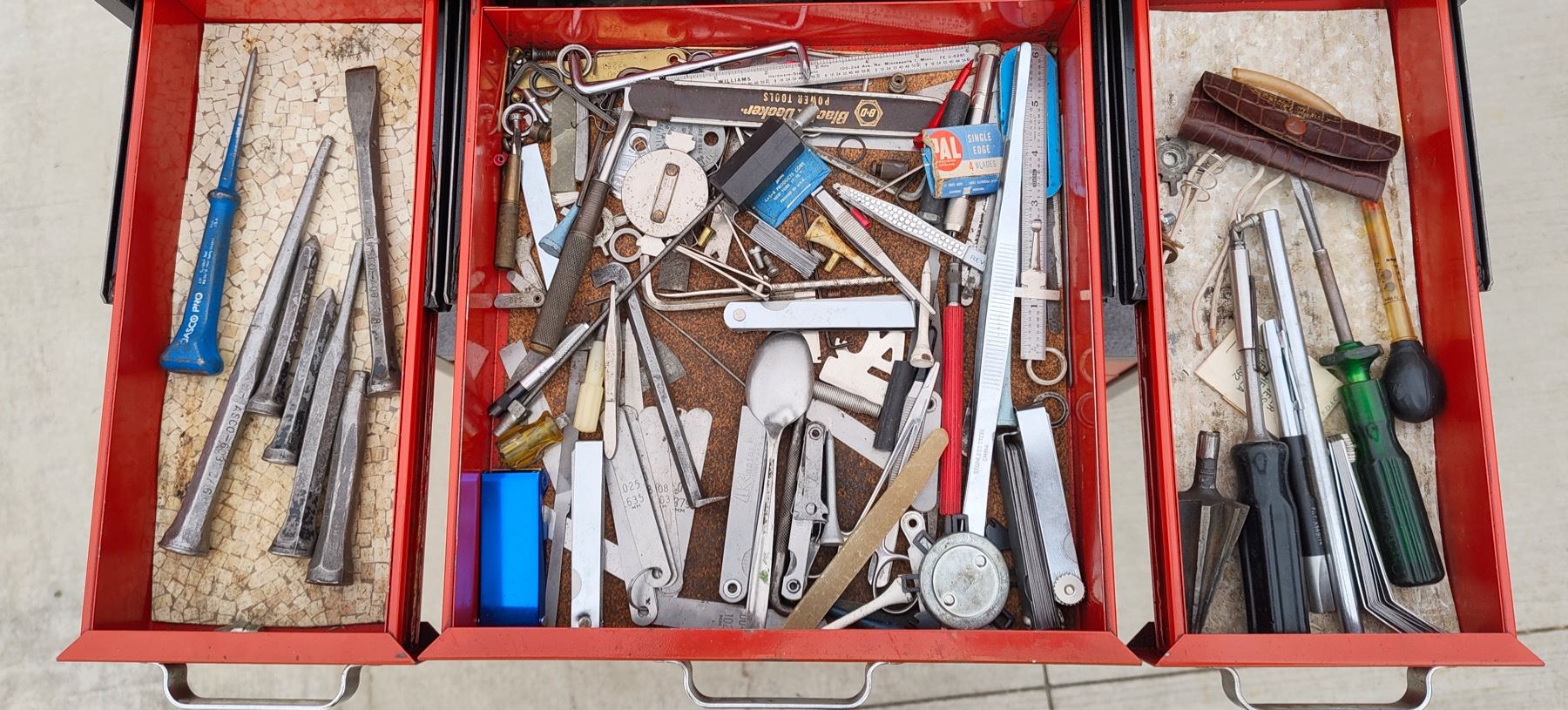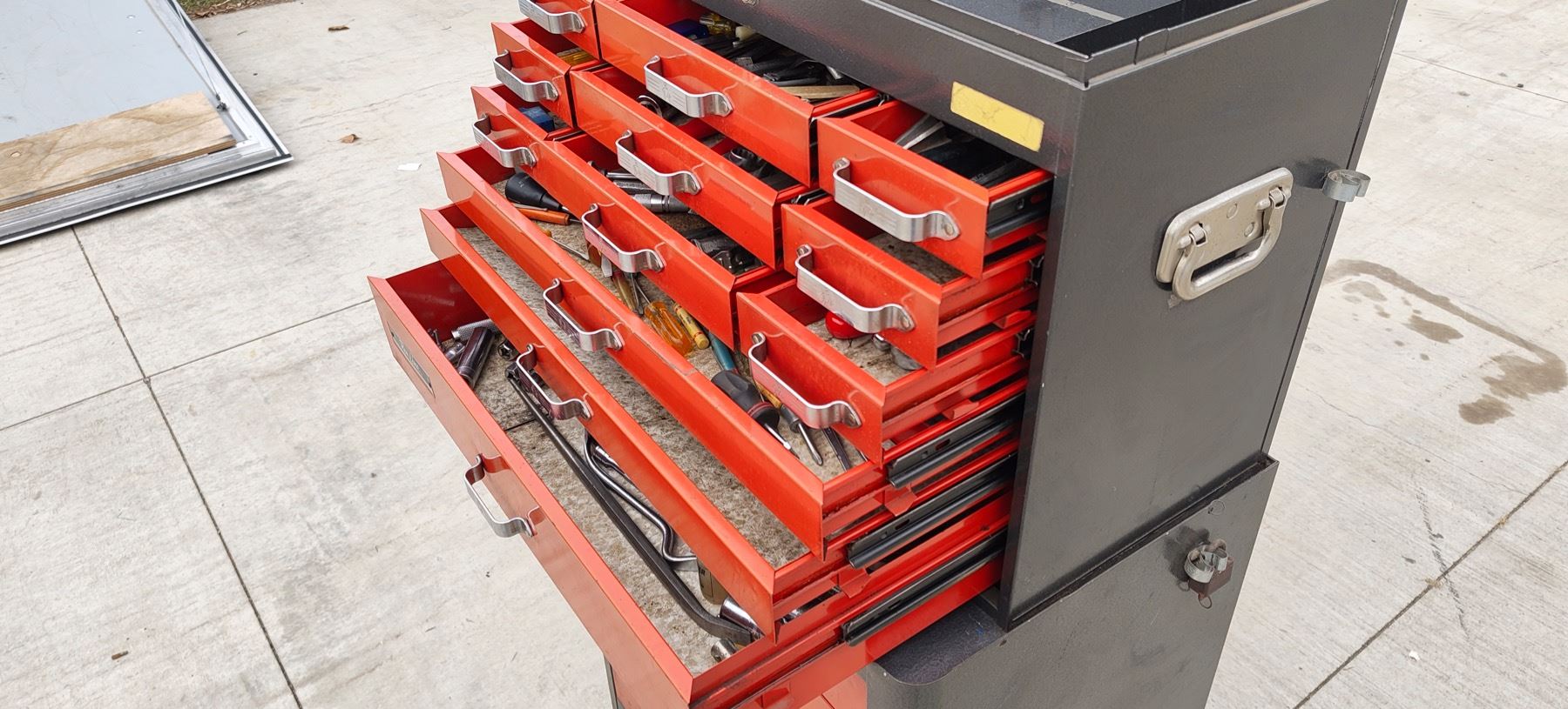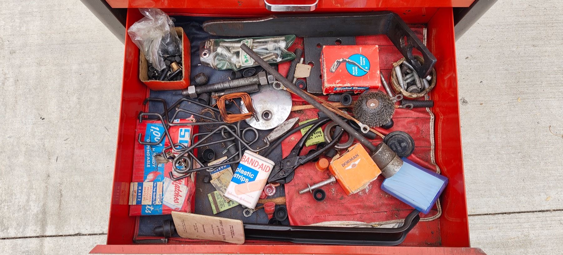 VINTAGE METAL REM LINE TOP AND BOTTOM TOOLBOXES WITH CONTENTS!