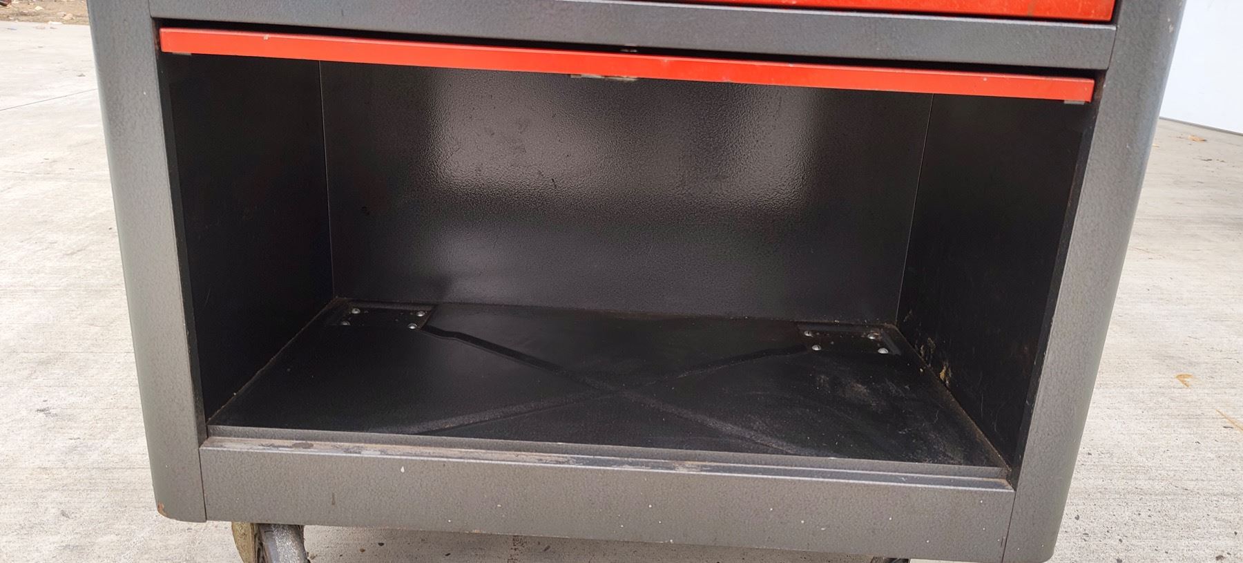 ON CASTORS AND EASY TO ROLL; NO NOTED RUST OR METAL DECOMPOSITION