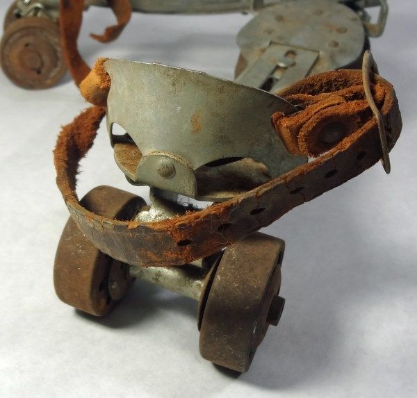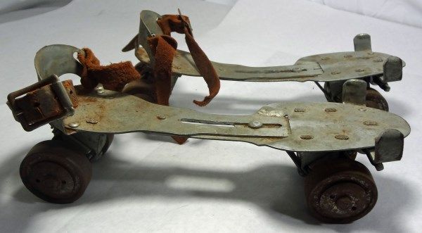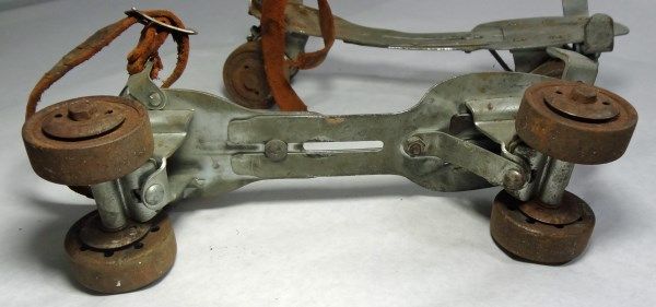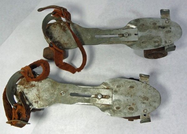 VINTAGE METAL ROLLER SKATES WITH LEATHER STRAPS. pERFECT FOR THE OLD TIME ROLLER SKATER