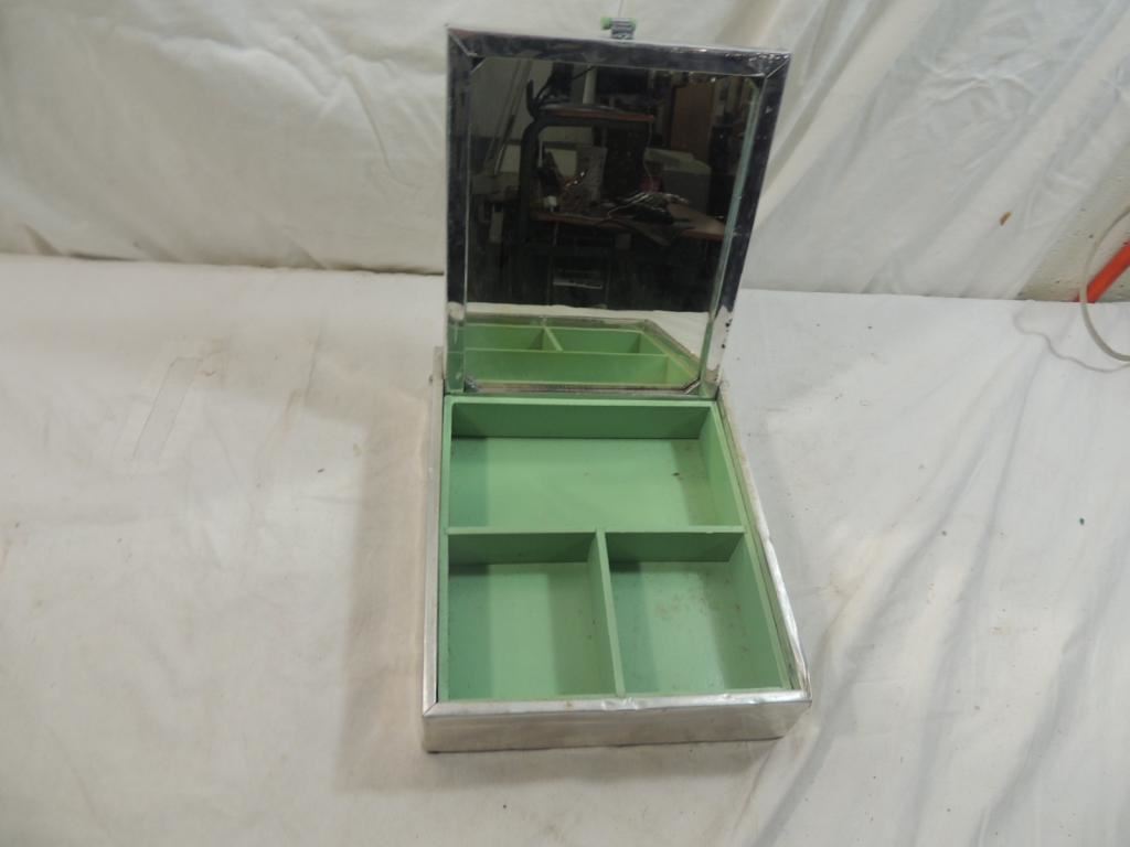 JEWELRY BOX, VINTAGE BOX, MIRROR, DECORATIVE BOX, COLLECTORS BOX, VINTAGE BOX, AS SHOWN SEE PHOTO FOR MORE DETAILS.