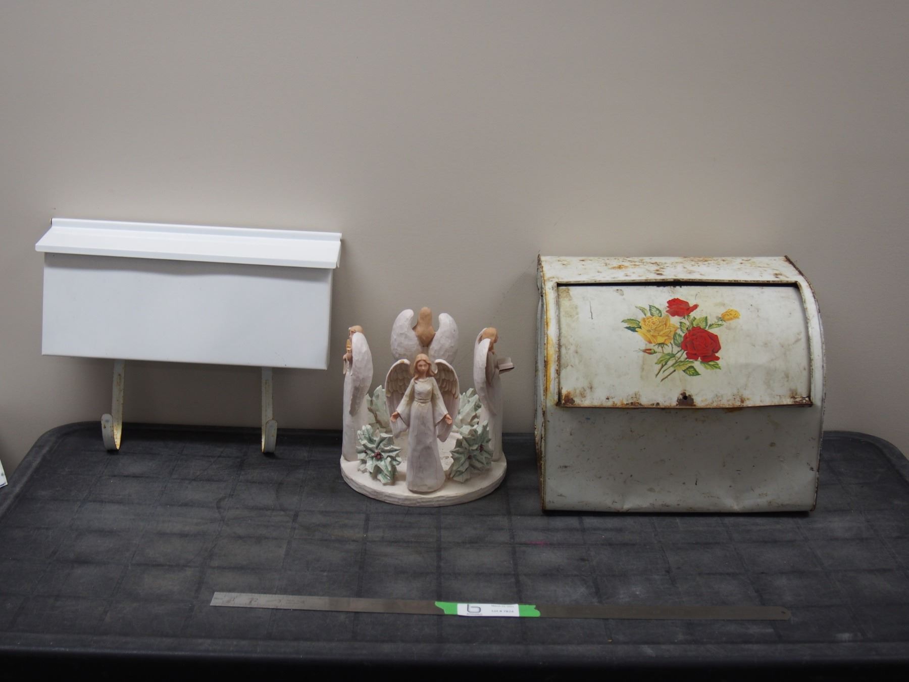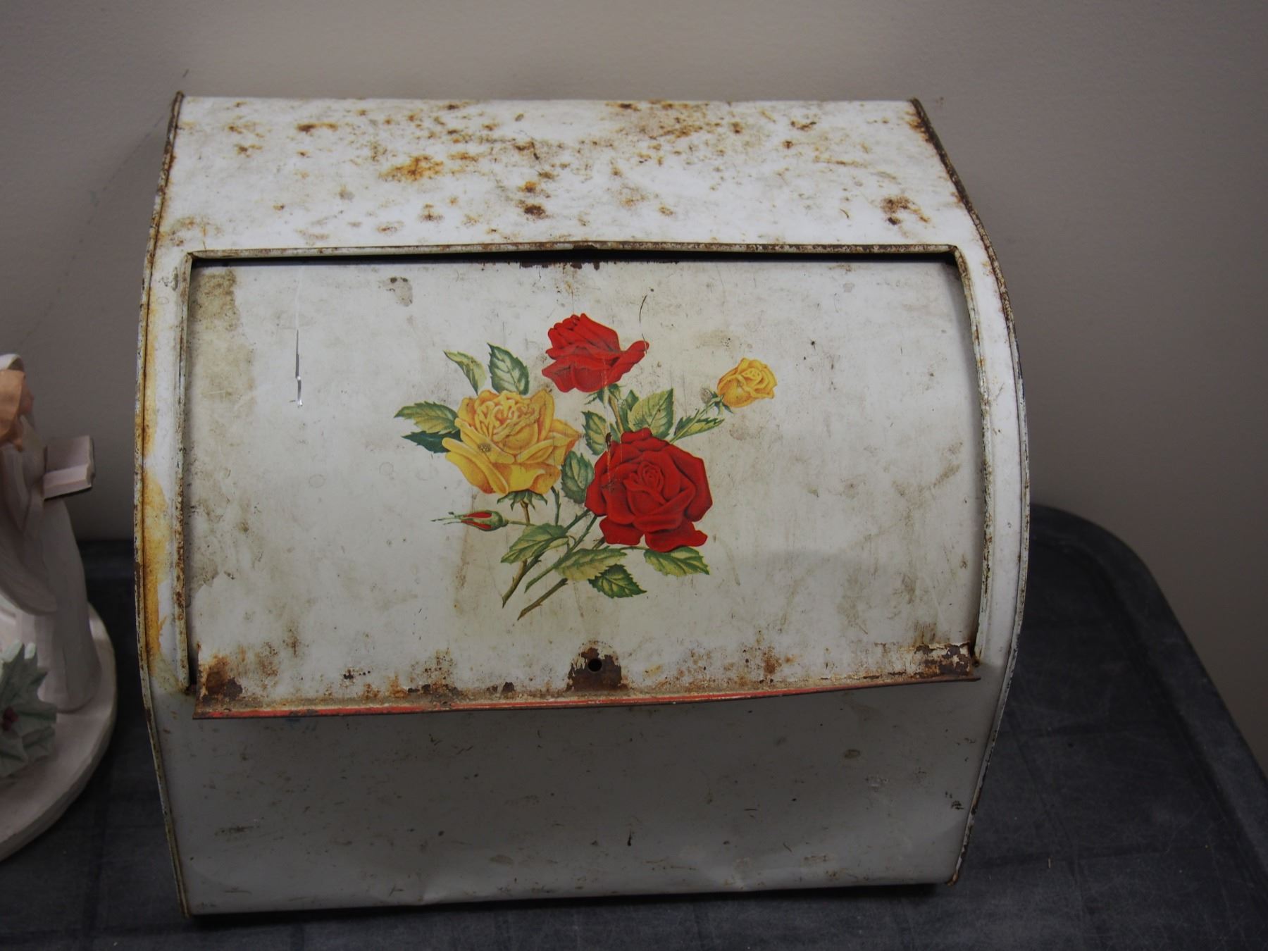 VINTAGE METAL STORAGE BOX, ORNAMENT PLUS MISC