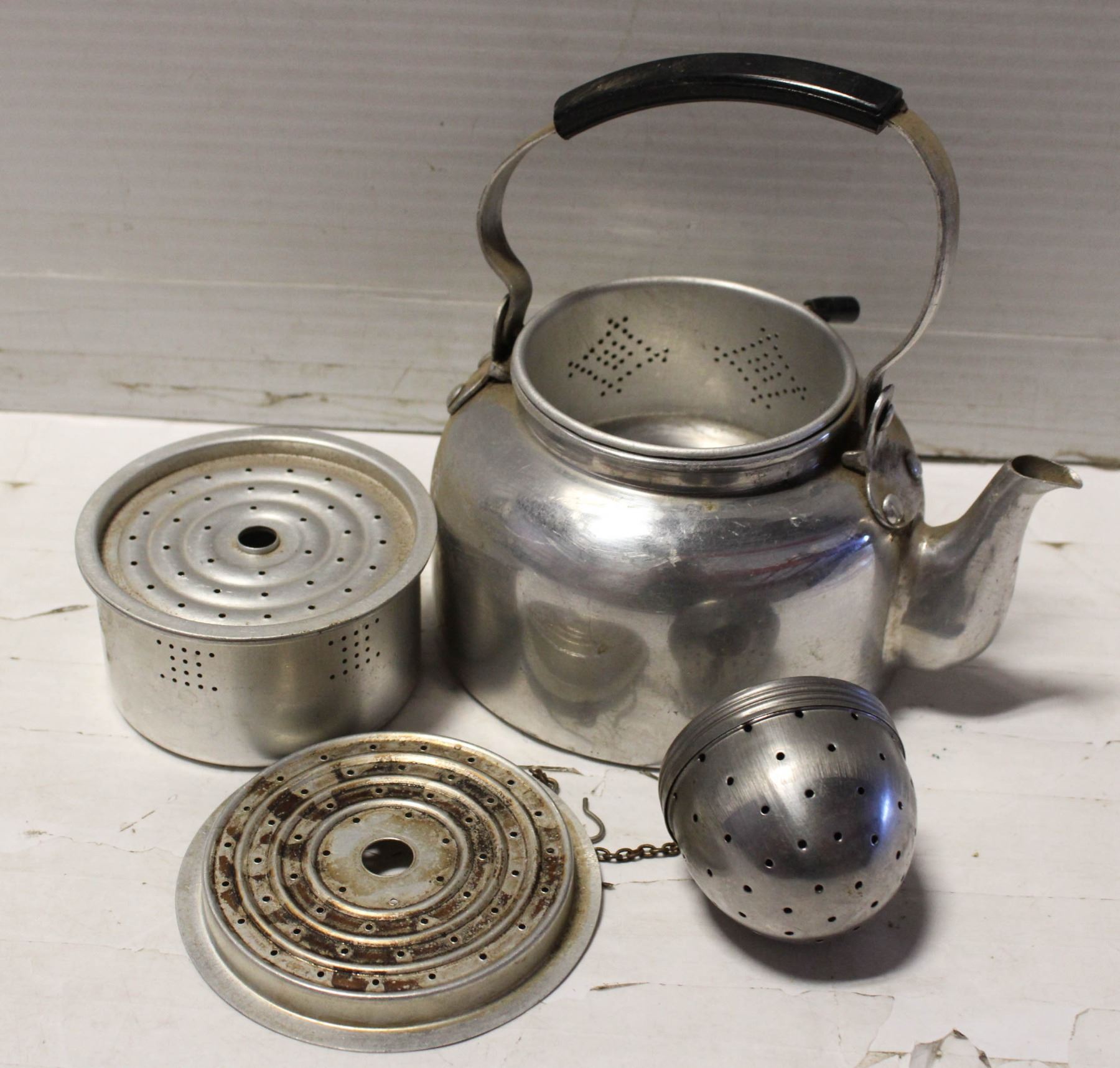 VINTAGE METAL TEA POT WITH ACCESSORIES