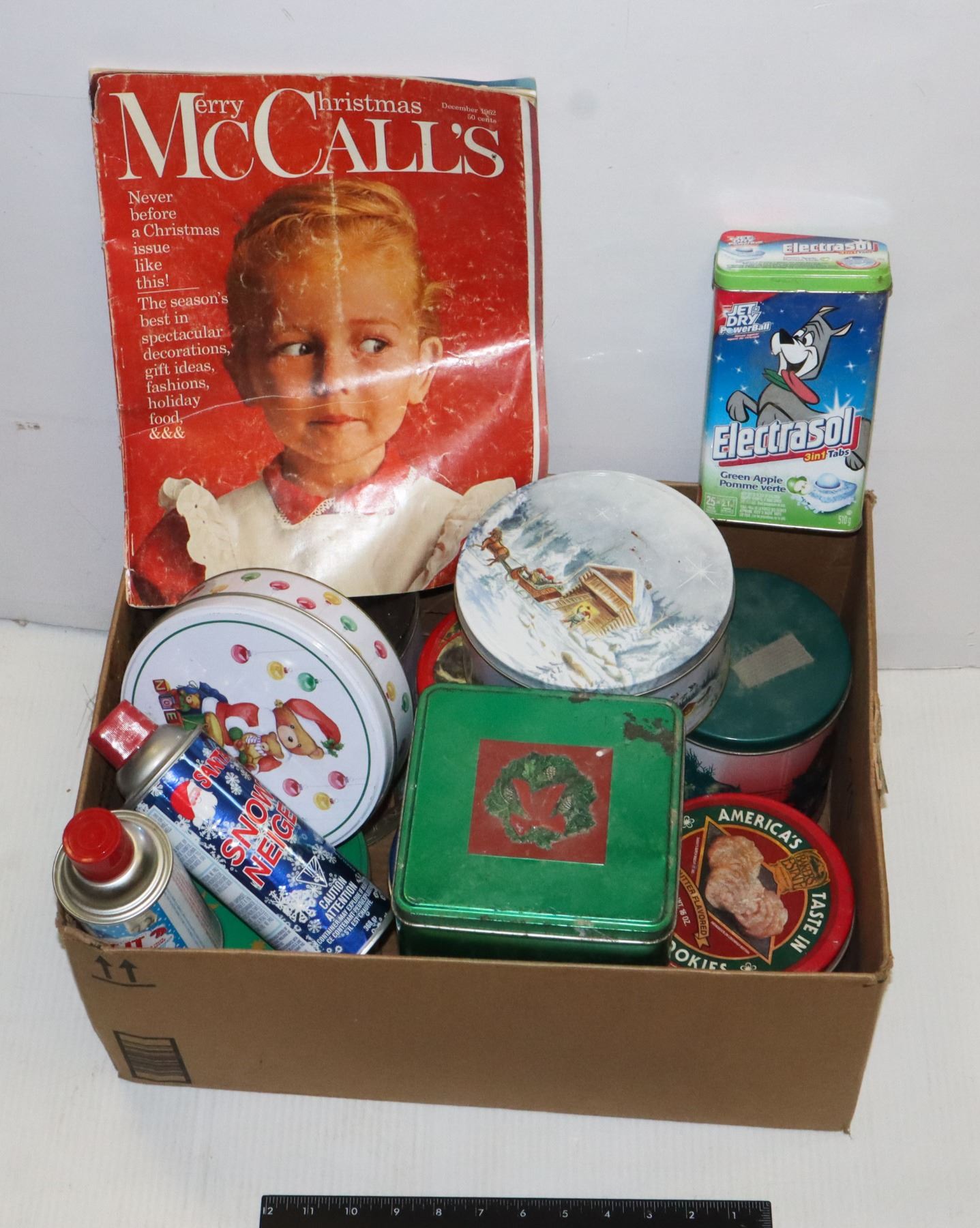 WITH ASTRO FROM THE JETSONS ON IT. SOLD WITH VINTAGE FAKE SNOW CANS AND 1962 MERRY CHRISTMAS MCCALL'S DECEMBER 1962 MAGAZINE. SOME PAGES HAVE RIPS