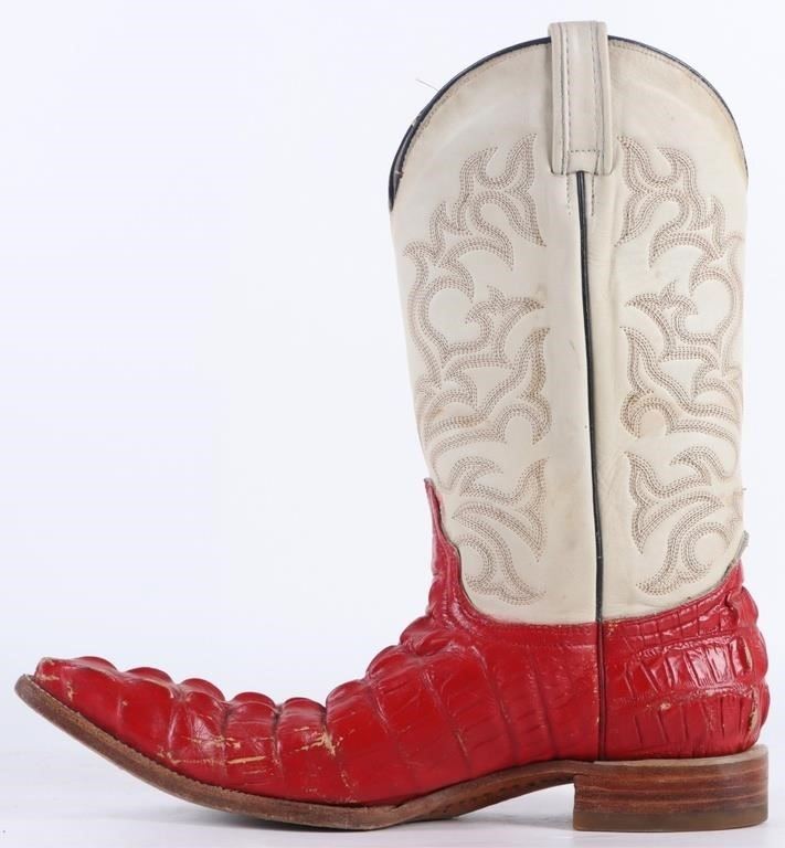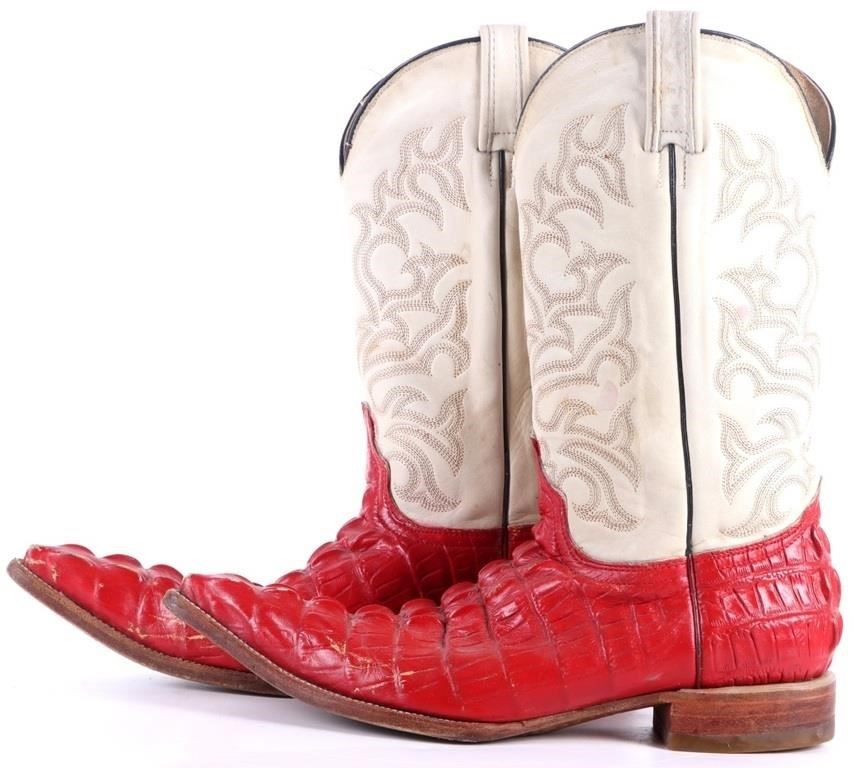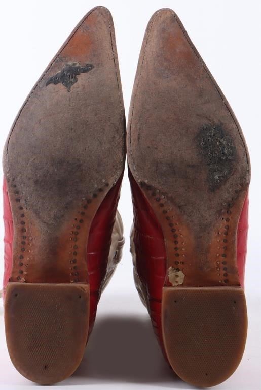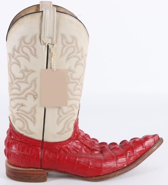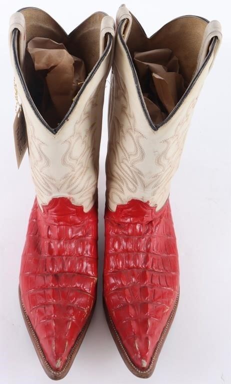 Vintage Mexican red/white gator skin & leather men's boots size 10.0 Men's. These vibrant boots are excellently crafted.