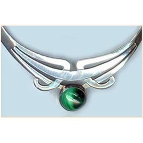 Please note that for Ebay Live Auctions only bids at or above $275 will be successful and will meet our reserve!!! Gorgeous vintage handmade sterling silver necklace, bezel set with round malachite stone in the center. Excellent workmanship, striking transitional Art Nouveau / Art Deco design. Inner marked : 925 (sterling) and TN-11. Part of other circular mark is not legible. Excellent condition, dimension : inner circumference is difficult to measure exactly, but is approximately 16-17". The center part is 1-1/2" high, size of the malachite stone is approx. 3/4" in diameter