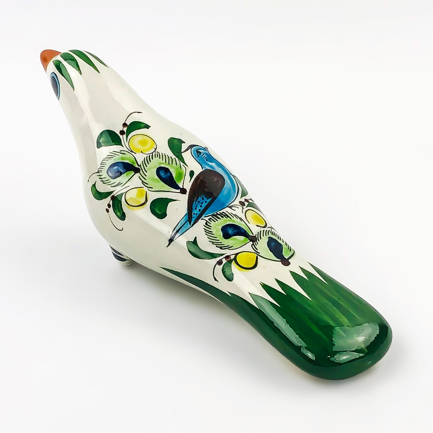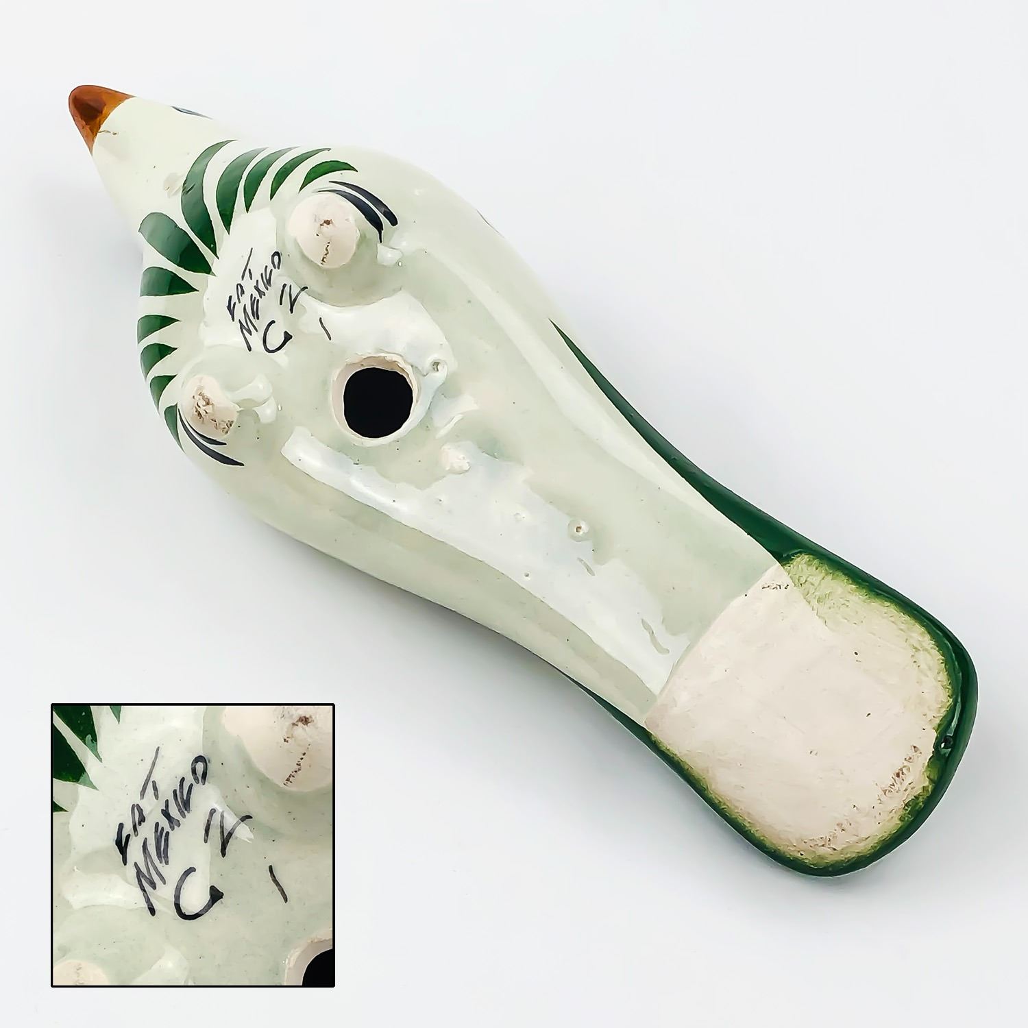 #9212 - HANDMADE AND PAINTED IN MEXICO. SIGNED ON THE BOTTOM. MEASURES: 8.75” (22 CM) LONG BY 2.75” (7 CM) WIDE AND 3.5” (9 CM) HIGH - TO THE TOP OF BIRDS HEAD***ITEM(S) LOCATED IN LETHBRIDGE ALBERTA. ALL ITEMS IN THIS AUCTION QUALIFY FOR OUR FREE TRANSPORT TO EDMONTON SERVICE. WORLDWIDE SHIPPING AVAILABLE