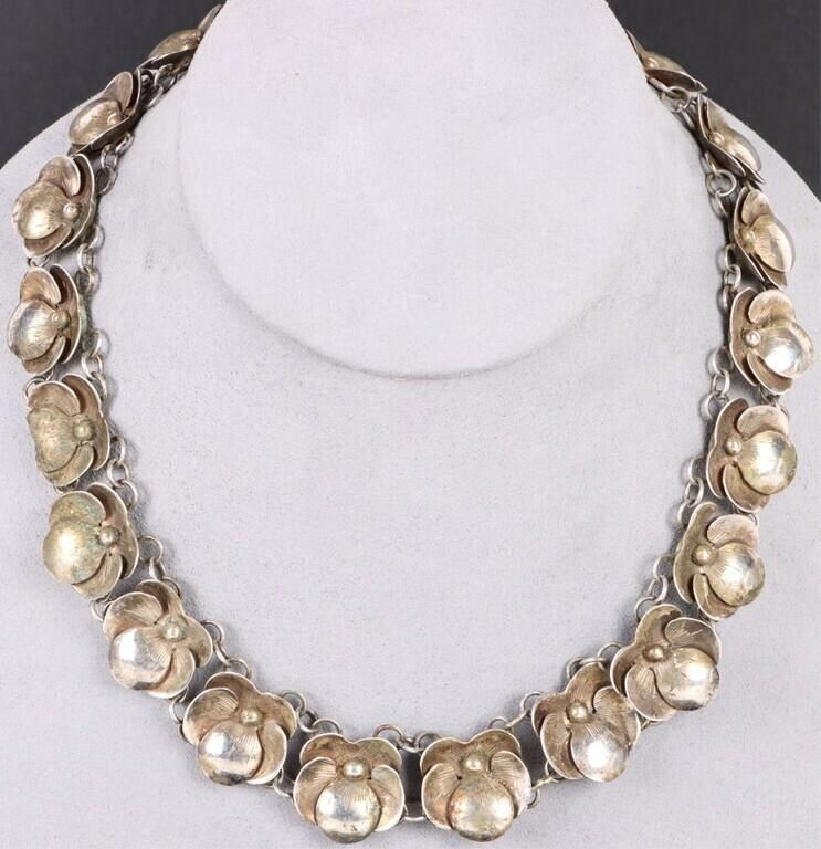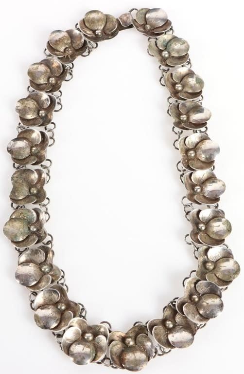 Vintage Mexico sterling silver 3D pansy flower necklace.