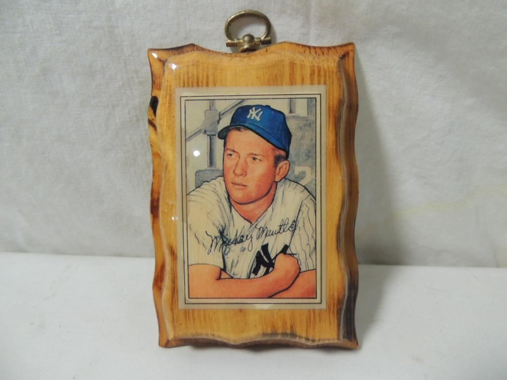 VINTAGE MICKEY MANTLE CARD WOODEN PLAQUE