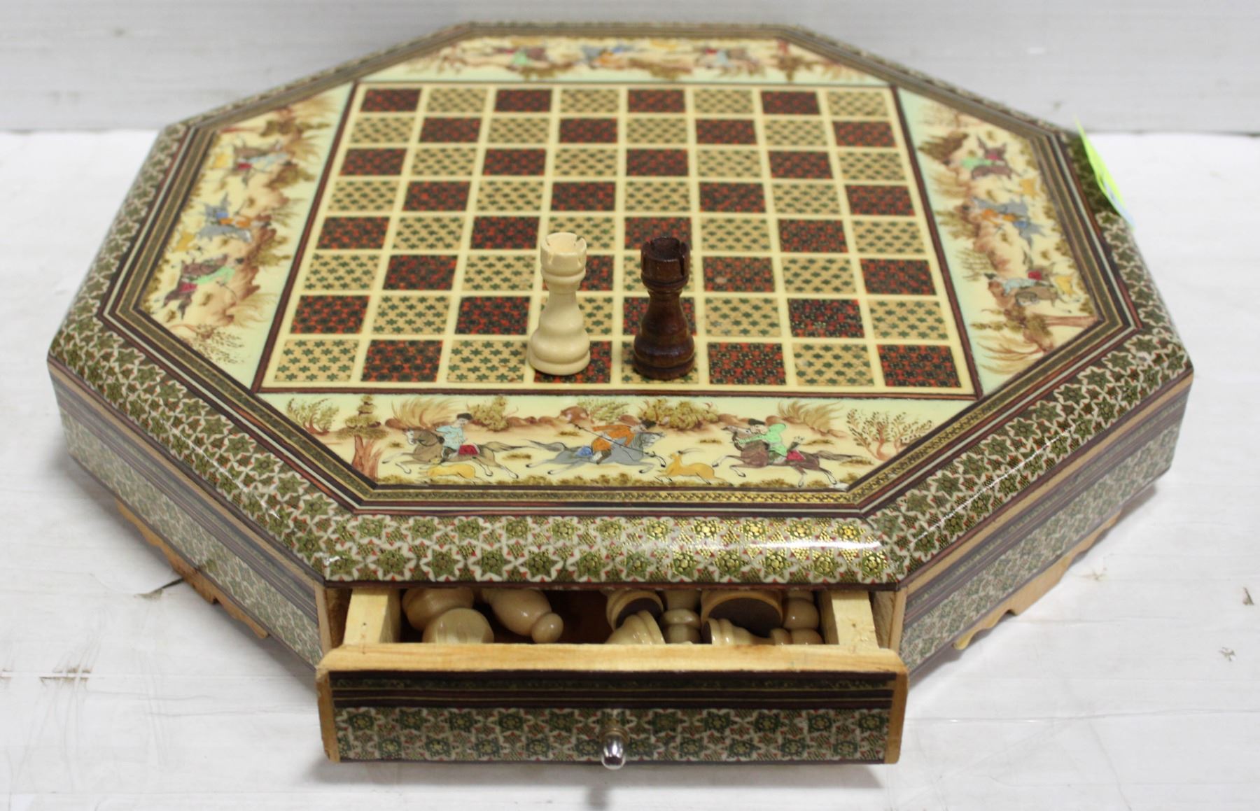 CHESS BOARD WITH DRAWER WITH CHESS PIECES MADE OF WOOD-ESTATE **ALL ITEMS MUST BE REMOVED BY 5PM SATURDAY, SEPTEMBER 21ST 2024. ALL REMAINING ITEMS WILL BE SUBJECT TO A $6.00 PER DAY STORAGE CHARGE. ANY ITEMS REMAINING AFTER MONDAY, OCTOBER 7TH 2024 WILL BE CONSIDERED FORFEITED. NO REFUNDS WILL BE ISSUED FOR FORFEITED ITEMS. TO SCHEDULE A PICK UP APPOINTMENT CLICK HERE