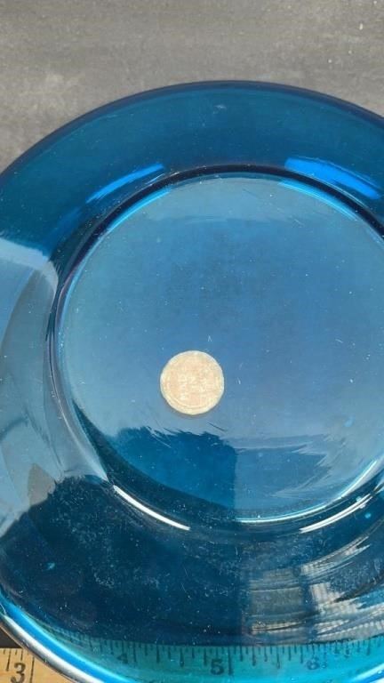 VINTAGE MID-CENTURY BLUE GLASS BOWL W HANDLE