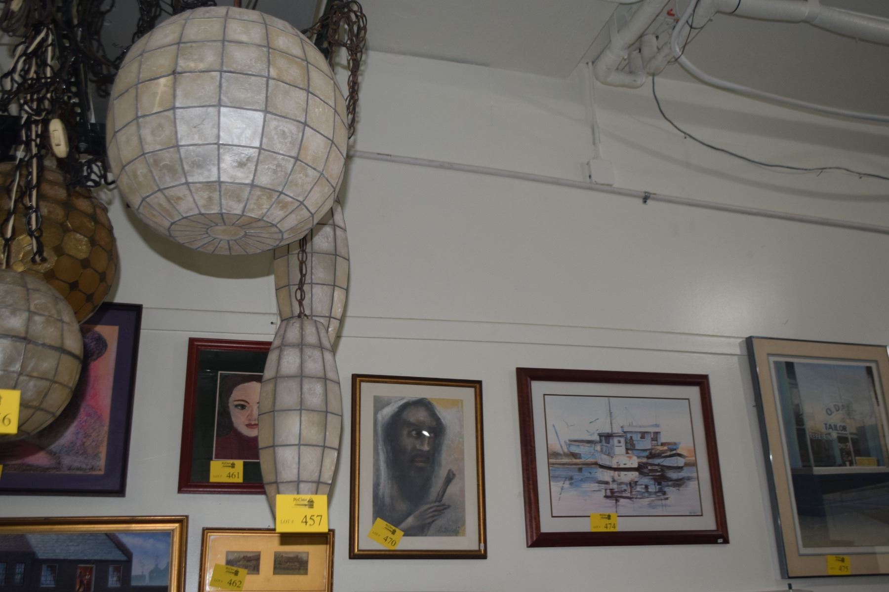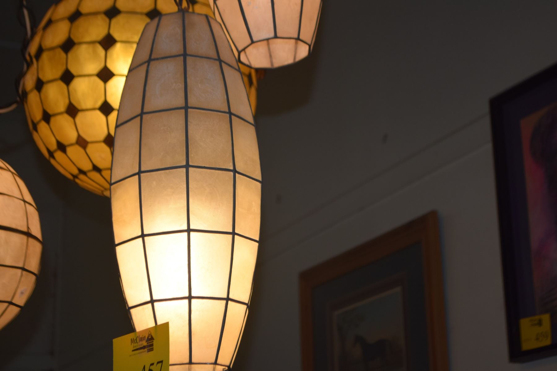 VINTAGE MID-CENTURY CAPIZ SHELL HANGING SWAG LAMPS (2 PCS)