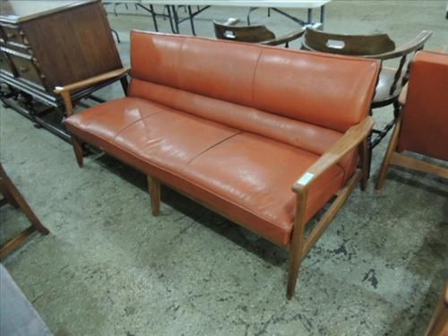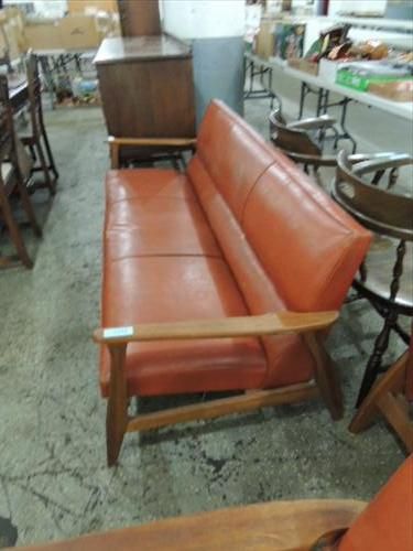 VINTAGE MID-CENTURY MODERN 68"L MAHOGANY CUSHIONED COUCH. AS SHOWN. VIEW PICTURE FOR DETAIL.