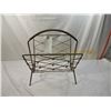 VINTAGE NEWSPAPER MAGAZINE RACK METAL RACK, GOLDTONE DECO RACK, MID CENTURY MODERN AS SHOWN SEE PHOTO FOR MORE DETAILS.