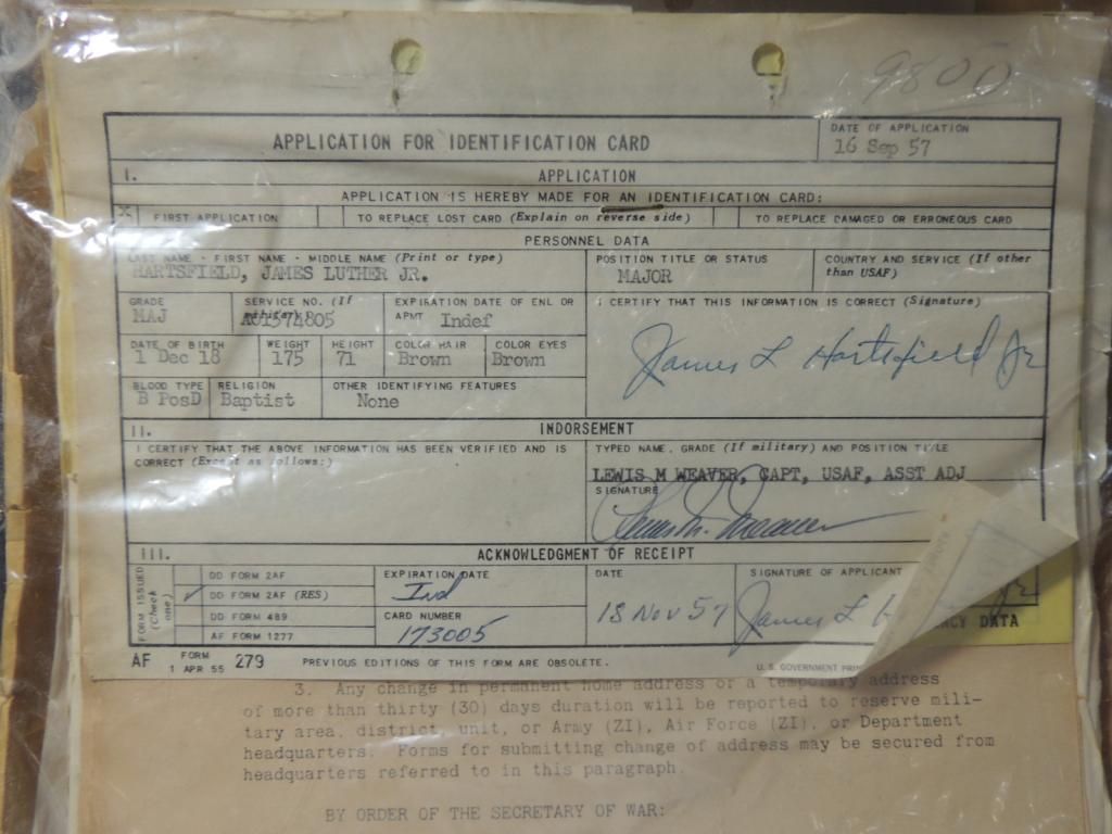 VINTAGE MILITARIANA EMPHERIA 1950S & 60S OF LT. COL. JAMES HARTFIELD. PAPERWORK & MEMMORABILIA. AS SHOWN. VIEW PICTURE FOR DETAIL.