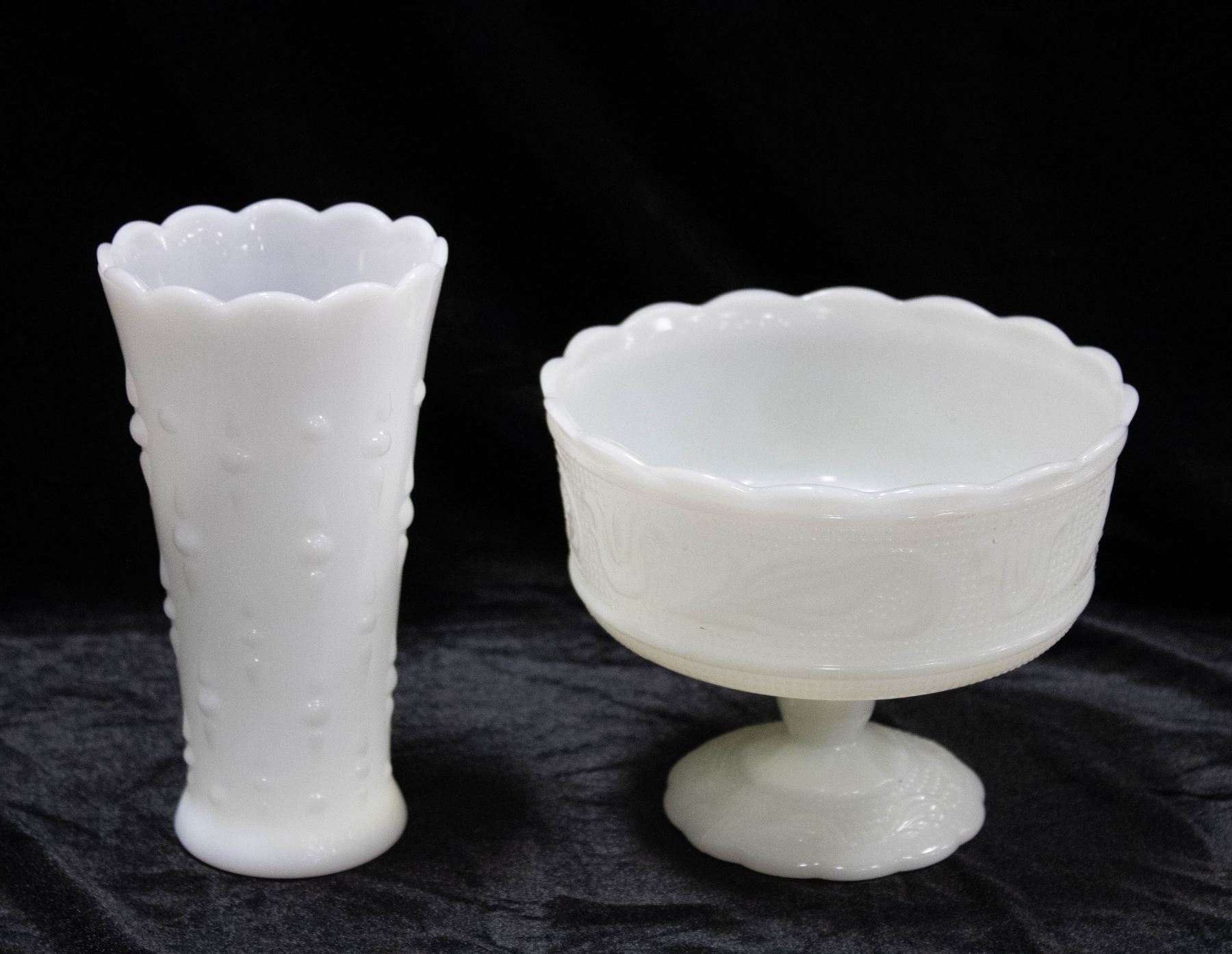 VINTAGE MILK GLASS VASE & PEDESTAL DISH