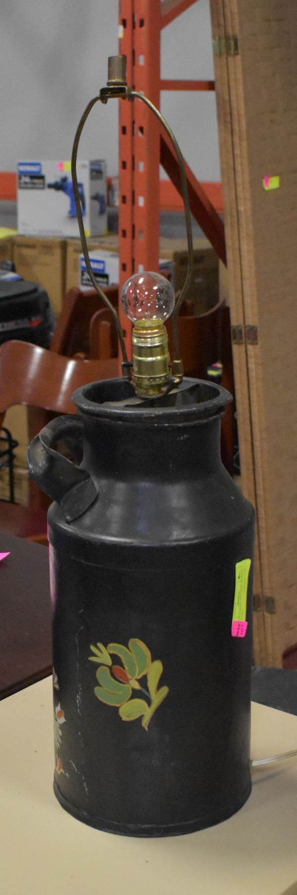 VINTAGE MILK TIN LAMP. WORKS. NO SHADE