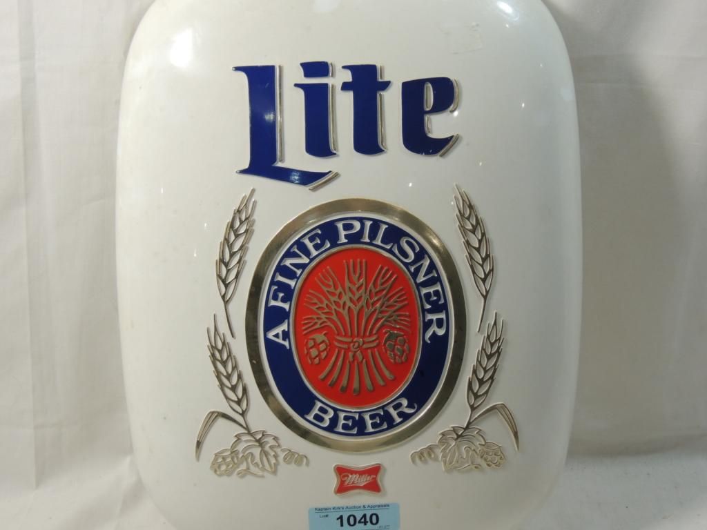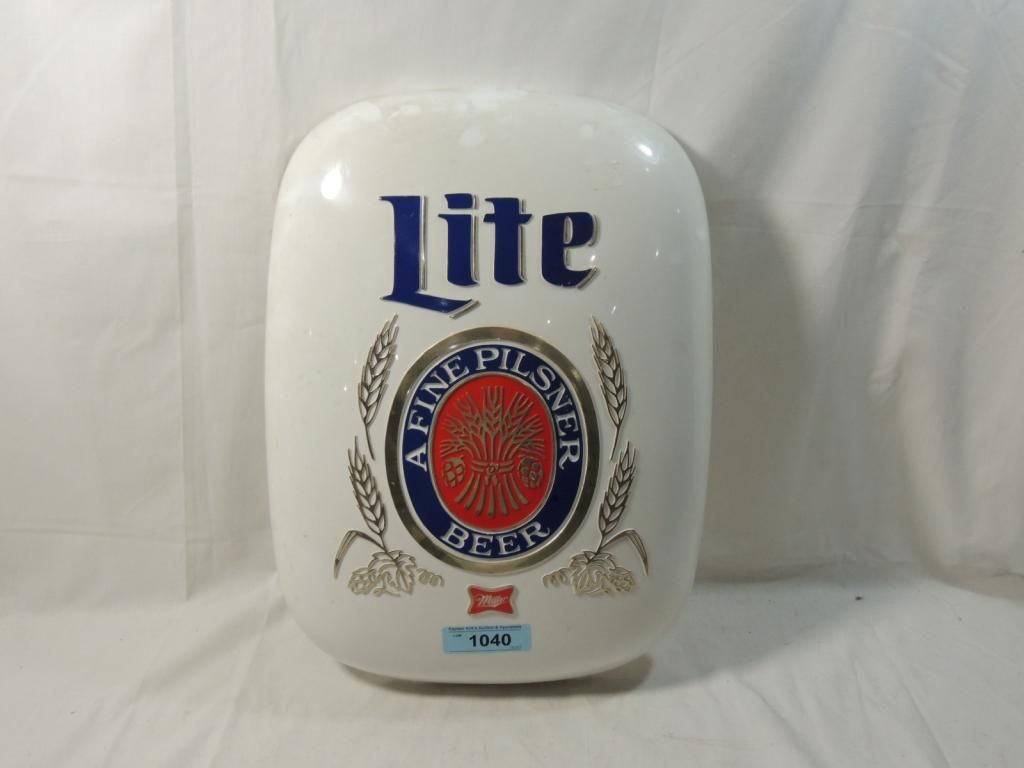BREWERIANA VINTAGE MILLER LITE PLASTIC BEER SIGN. PLASTIC SIGN WALL COVER. AS SHOWN SEE PHOTO FOR MORE DETAILS.