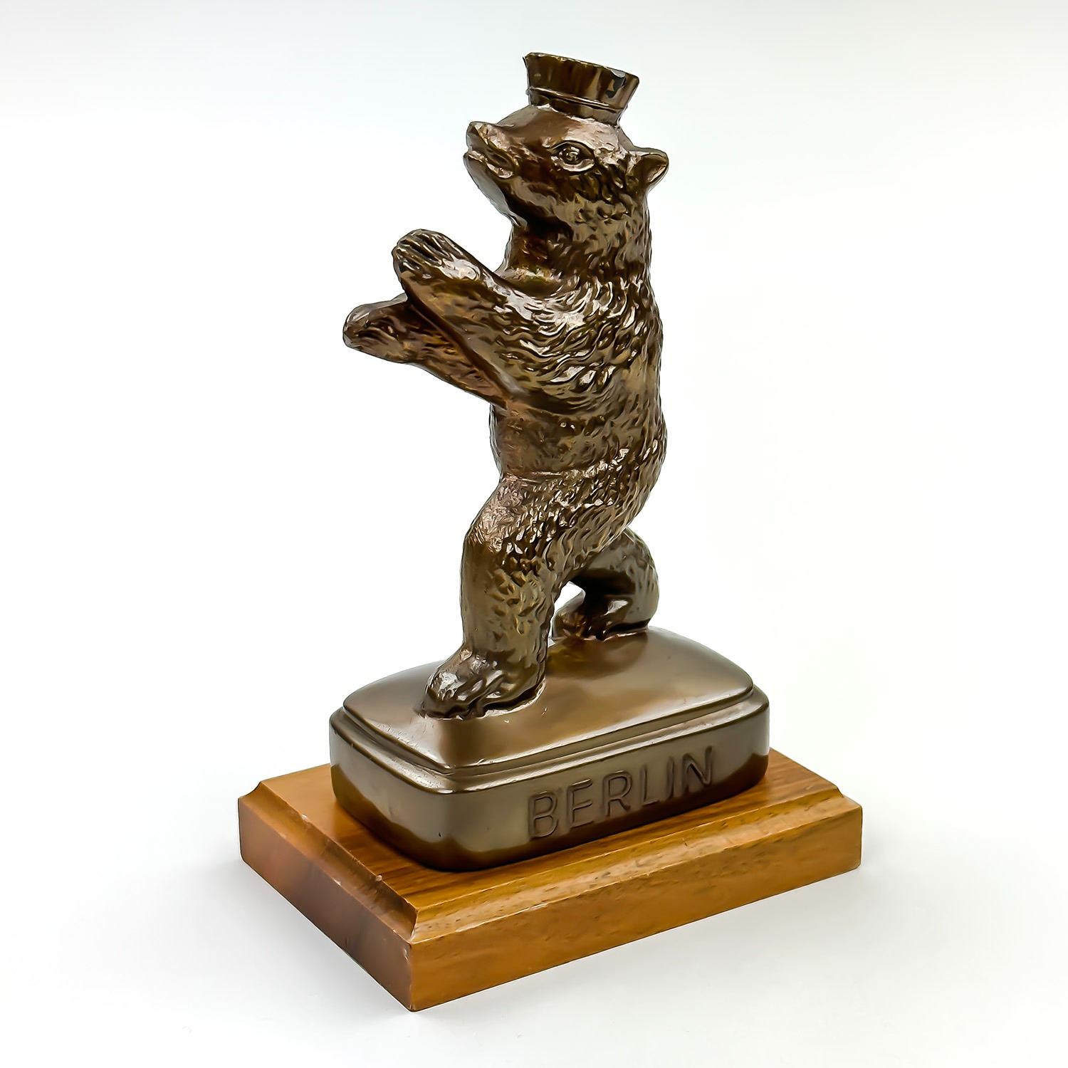 #8025 - METAL BELIN BEAR FIGURINE WITH WOODEN BASE. WOULD MAKE A GOOD PAPERWEIGHT. AGE AND MAKER UNKNOWN. MEASURES: 5” (12.5 CM) TALL BY 3.125” (8 CM) WIDE AND 2.25” (5.5 CM) DEEP***ITEM(S) LOCATED IN LETHBRIDGE ALBERTA. FREE TRANSPORT TO EDMONTON OFFICE AVAILABLE FOR THIS AUCTION. WORLDWIDE SHIPPING IS AVAILABLE FOR ALL ITEMS