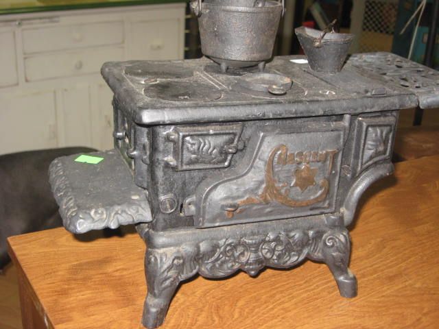VINTAGE MINIATURE CAST IRON WOOD COOK STOVE & ACCE