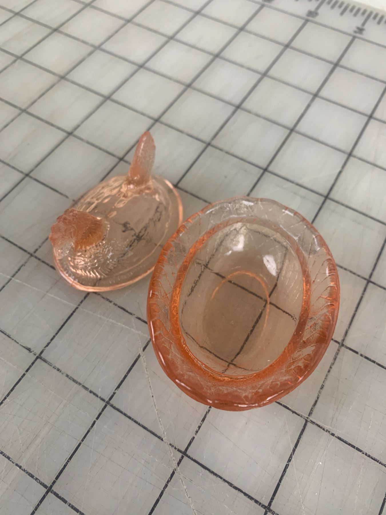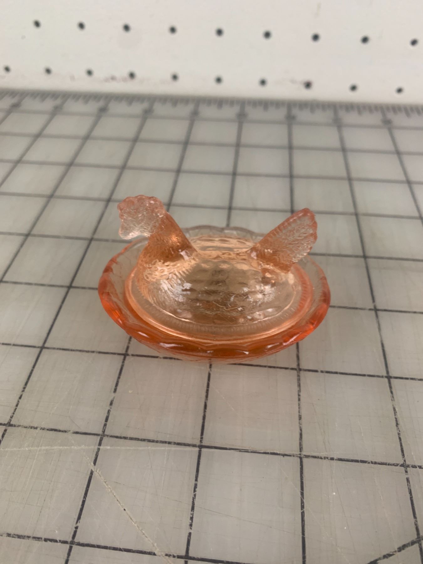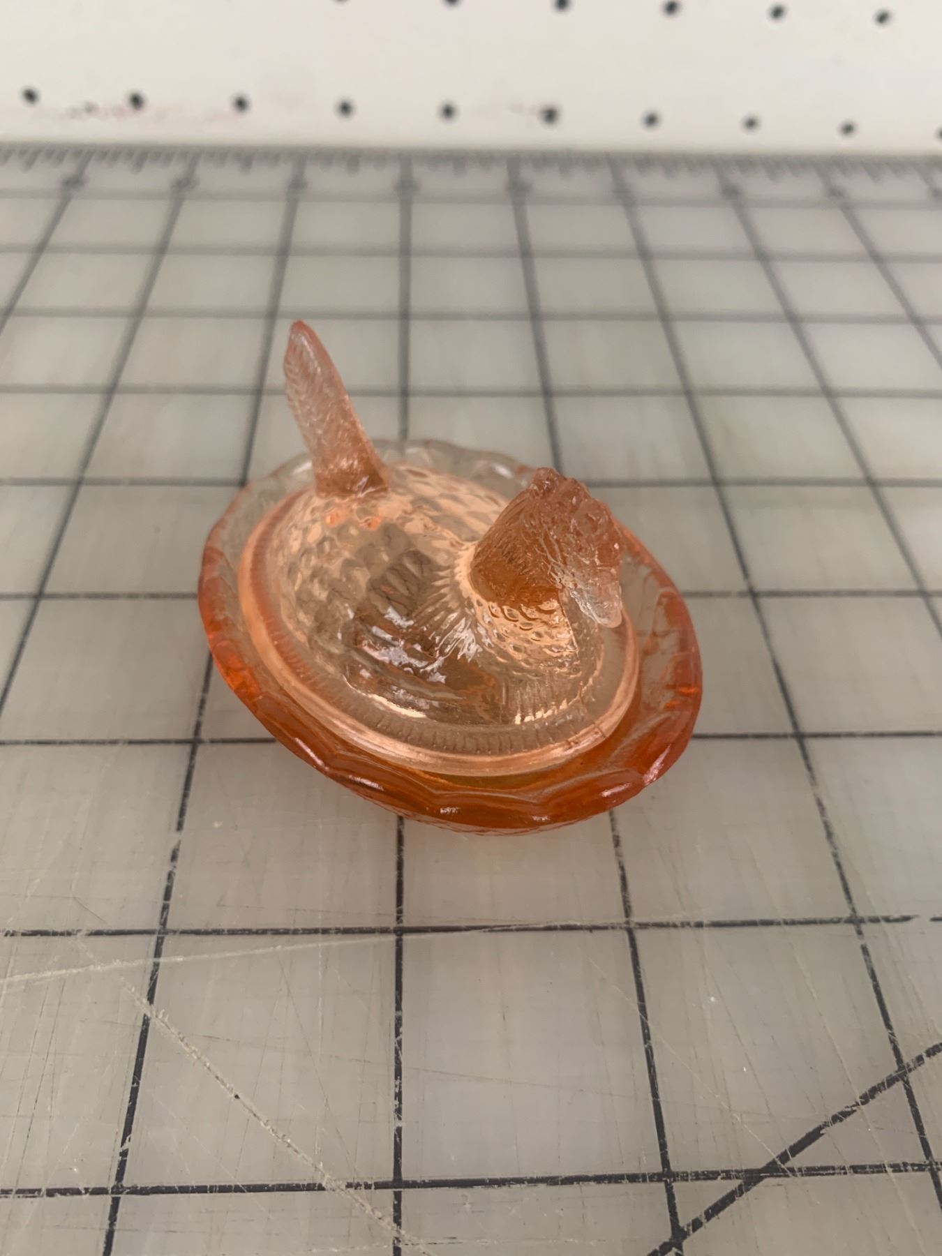 VINTAGE MINIATURE PINK GLASS HEN ON A NEST