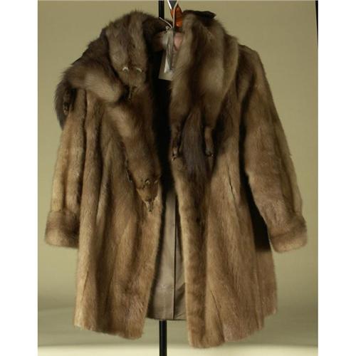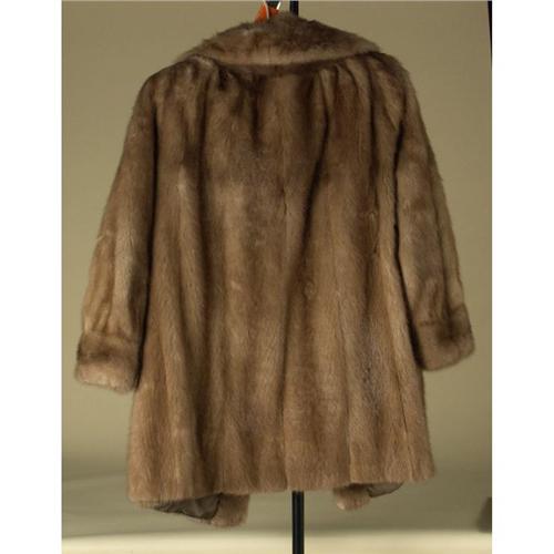 FUR: Vintage mink coat, autumn haze coloration, shawl collar and three-quarter length sleeves and separate sable or mink full body collar.  Coat measures 32'' long, 16'' shoulder, 21'' sleeves, 23'' armpit to armpit, 24'' across body, (flat measurements), interior monogram, no rips or holes noted.  The collar includes three full body sable pelts, feet, heads, and tails, 42'' total length, clip and toggle closures.