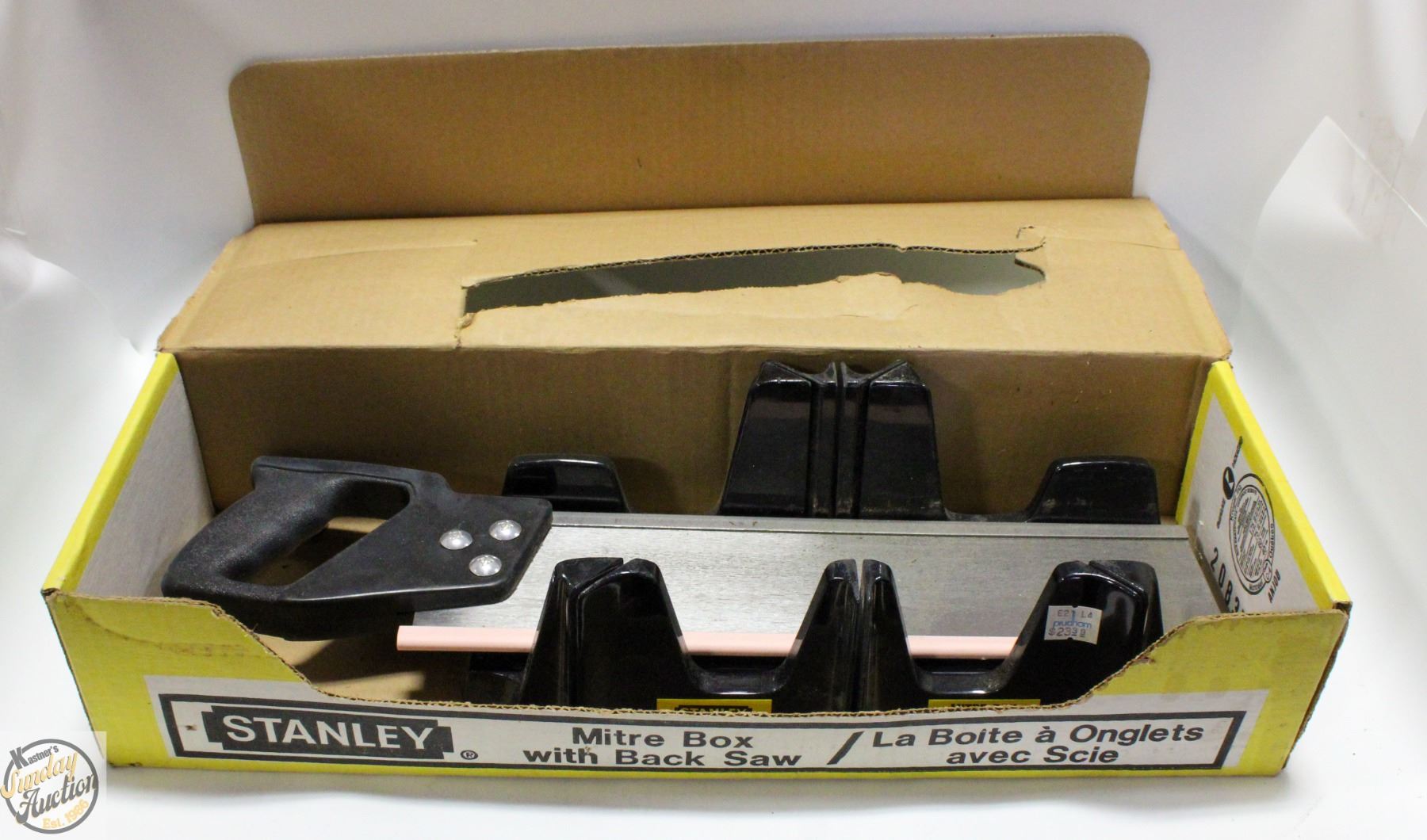 VINTAGE MITRE BOX WITH STANLEY BLACK SAW IN BOX