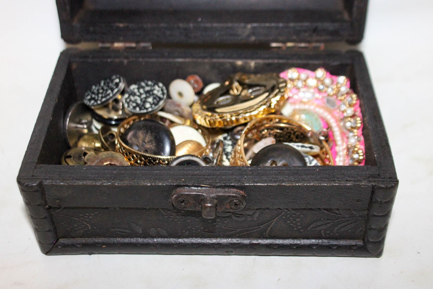 VINTAGE MIX BUTTONS IN WOOD CHEST BOX-ESTATE