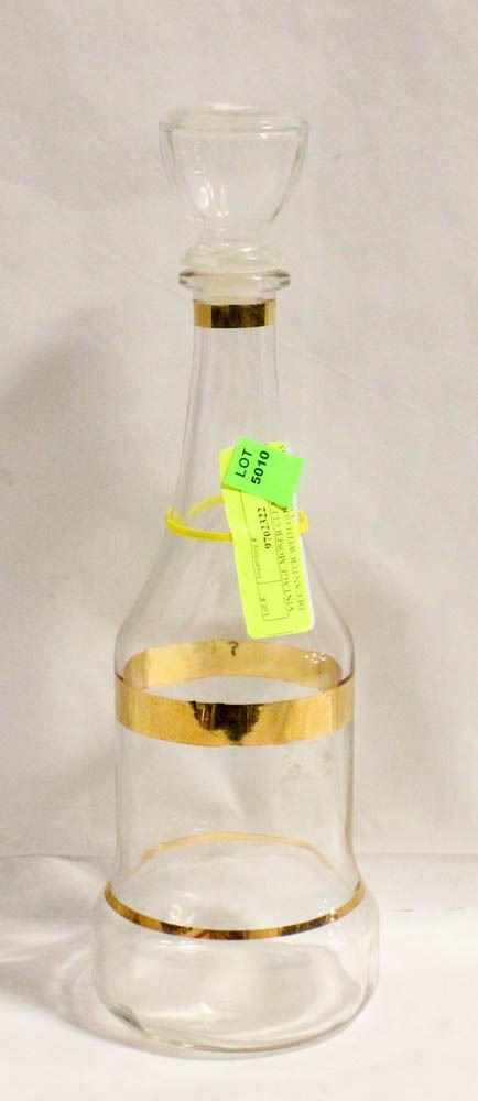 VINTAGE MOSER CLEAR CUT GLASS DECANTER WITH GOLD