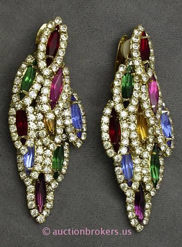 VINTAGE MULTI-COLORED DANGLE STYLE CLIP EARRINGS.