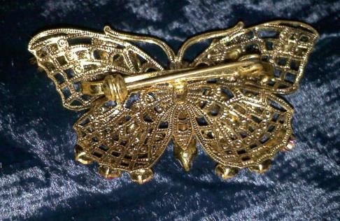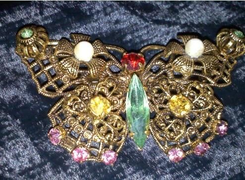 VINTAGE MULTICOLOR RHINESTONE BUTTERFLY BROOCH / PIN, Measures approx 1 in x 2 in mwf8082